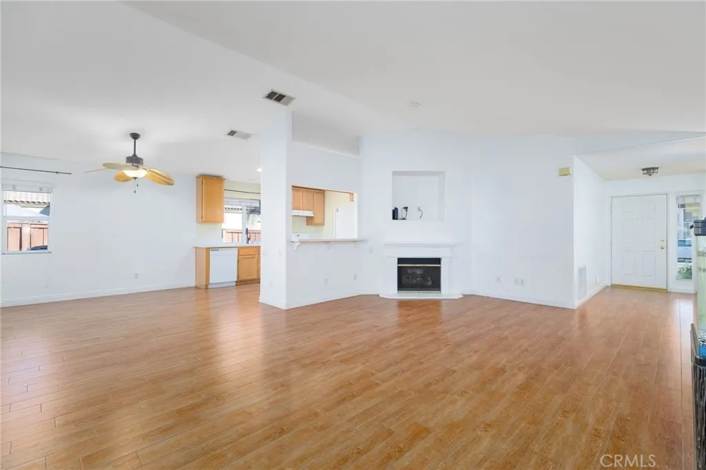 Welcome to this single story 3 bedroom 2 bathroom home located in a beautiful cul de sac. The home offers a functional floor plan with abundant natural light and attractive flooring throughout the main living areas. The kitchen features ample cabinet storage, white countertops, recessed lighting, and a window that brings in natural light. It opens to the dining and living areas, creating a comfortable flow for everyday living and entertaining. The living room includes a fireplace and sliding glass doors that lead directly to the backyard. All bedrooms are well sized, including a primary bedroom with an attached bathroom and sliding glass doors providing direct access to the backyard. Both bathrooms feature clean finishes with shower and tub combinations. The laundry area is conveniently located in the garage, and the home includes a finished two car garage. The backyard features a large covered patio, offering a great space for outdoor dining or relaxing. Mature fruit trees include three lemon trees and one apple tree. A storage shed provides additional utility space, and the yard layout allows flexibility for entertaining, gardening, or future use. The front yard is neatly maintained, and the cul de sac location provides a quieter setting with reduced traffic. Conveniently located near schools, parks, and local amenities, this home offers comfort, space, and practicality in an established neighborhood.