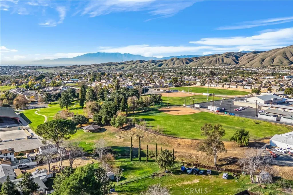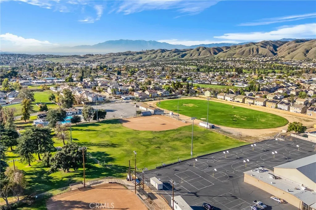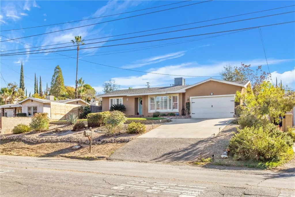 Move-in ready 3-bedroom, 2-bath Yucaipa home offering comfort, style, and energy efficiency with solar panels, a new whole-house fan, and a new AC unit. Enter into a large family room featuring attractive wood laminate flooring, perfect for everyday living and gatherings. The spacious dining area includes French doors that open to a park-like backyard, creating an ideal indoor-outdoor flow. The kitchen showcases Corian countertops, stainless steel appliances, abundant cabinetry, and generous prep space. All three bedrooms are spacious and well-appointed. The large guest bathroom includes built-in storage for added convenience. The primary suite is a true retreat, featuring a cozy fireplace, French doors leading to the backyard, dual sinks, a separate toilet area, and a shower/tub combination with a relaxing jetted spa tub. Additional highlights include a retrofitted foundation to withstand large earthquakes, newer windows, wood shutters throughout, and solar panel to help reduce energy costs. Step outside to enjoy a private, expansive backyard with covered patios perfect for entertaining, plus plenty of room for toys, gardening, or adding a pool. A wonderful opportunity to enjoy comfortable, efficient living in a desirable Yucaipa location. Great space for kids with the park across the street, and theres a lot of upside to living in Yucaipa with all of the wineries coming.