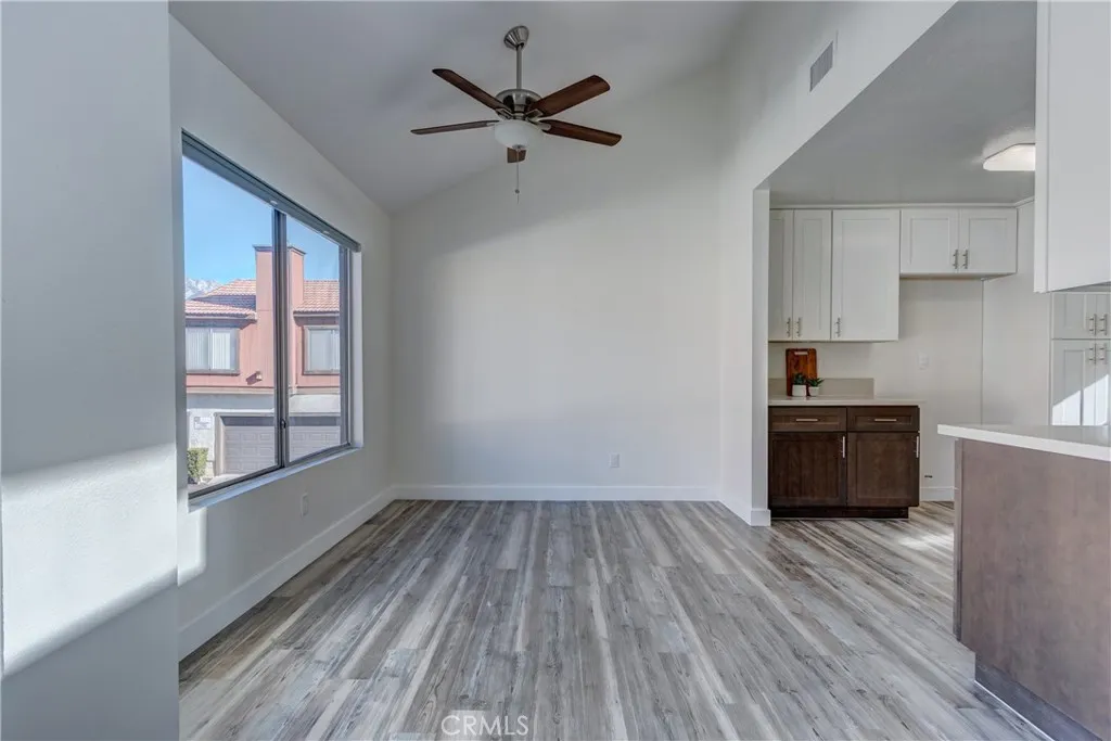 A fantastic starter home or investment opportunity in a prime location. This bright and open 2-bedroom, 1-bath end-unit condo offers added privacy with no shared common walls. Fresh interior paint throughout the home and garage, new baseboards, new blinds and a renovated kitchen make this property truly move-in ready. The inviting living room features a cozy fireplace, vaulted ceiling creating a larger open concept with lots of natural light. You have access to your own a private balcony, perfect for relaxing or entertaining. The spacious primary bedroom has vaulted ceilings and it has it's own private balcony, creating a comfortable retreat. A connected 2-car garage adds everyday convenience. Ideally situated bordering Rancho Cucamonga, this condo is close to shopping, dining, and provides easy access to the 10 and 210 freeways. Community amenities include a swimming pool and tennis court. With location, privacy, and upgrades, this home is a must-see and wont last long.