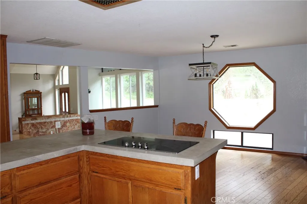 Fabulous Homestead on 4.80 Level Acres! Spacious contemporary home with storied windows to take in the forested surroundings. This home treats you to three generous sized bedrooms including a luxurious primary suite accented with marble tiled walk-in shower and a glorious jetted tub. Beautiful original hardwood flooring throughout the home, with many custom details, yet opportunity to update and add your own personal touches. Enjoy the centrally located wood burning fireplace that keeps this home nice and cozy. Recent upgrades include newer roof, new sliding doors and some windows. Also new mini-split heat and air, counter tops and updated lighting throughout the home. Property is perimeter fenced, set up for horses and is bordered by PGE Centerville Canal with deeded water rights. Property includes detached shop/garage with air compressor and plumbed lines, plus a Generac generator for any power outages.