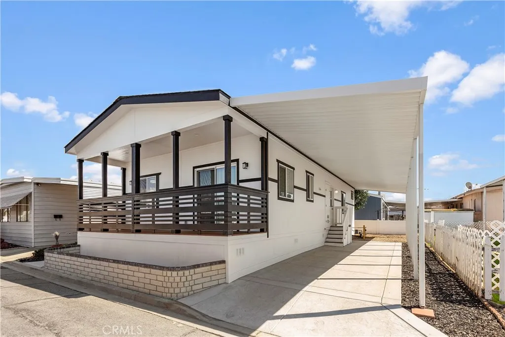 This charming single-family property in La Verne offers picturesque mountain views and a range of amenities within the Kings Way Gardens community. Built-in October 2023, this modern manufactured home boasts an inviting open floor plan with 2 bedrooms/2 bathrooms and a den that could also serve as a 3rd bedroom, home office, or kids' playroom. This park is located near the fairgrounds, which offers a variety of venues and family fun. Comes with stainless steel appliances, including a refrigerator with an ice maker. This open-concept layout includes central air and heat, ceiling fans, vaulted ceilings, a quartz countertop, hardwood cabinets, and a 2-3vehicle carport. There is a utility/laundry room. This home is bright and has natural light throughout the interior spaces. The house is designed for social gatherings, featuring an oversized front patio that seamlessly connects to the main living areas. Residents can enjoy the community, swimming pool & two spas, along with a playground. There is also an onsite laundry room and an event clubhouse for your social gatherings. This dream home is conveniently located near shops, restaurants, and easy access to freeways. This is in the La Verne school district, which is known for its above-average educational experience.