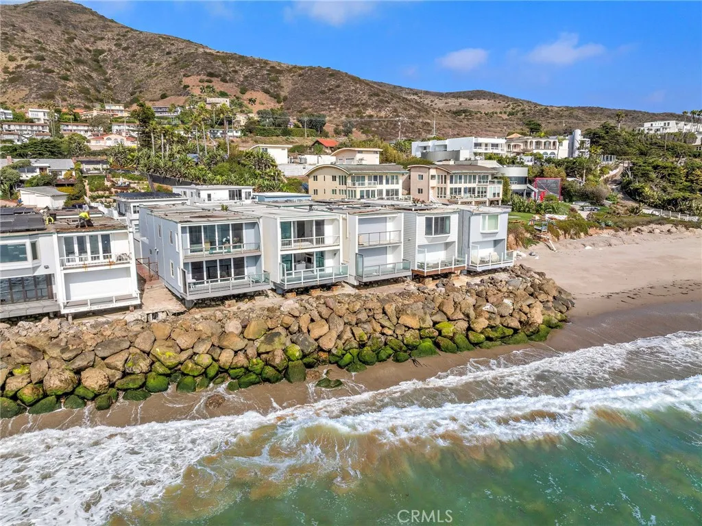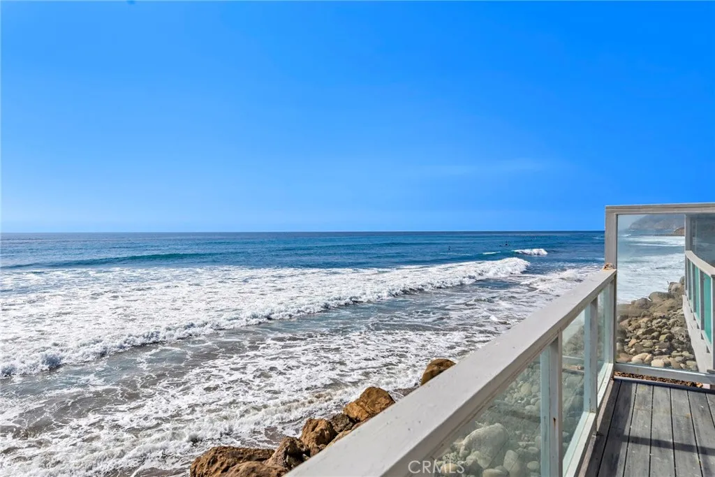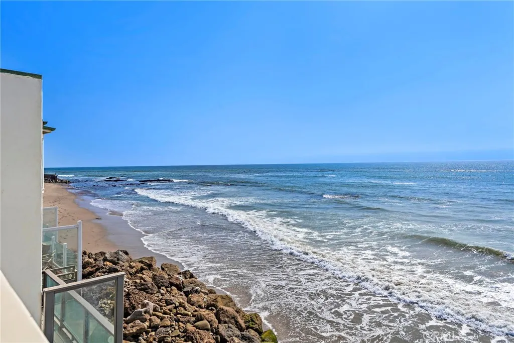 Experience the ultimate Malibu lifestyle in this exquisite 3-bedroom, 3.5-bathroom beach home, designed to fulfill all your coastal dreams. This meticulously remodeled residence features a state-of-the-art Gaggenau kitchen with quartz countertops and a 30-bottle wine cabinet, perfect for culinary enthusiasts and entertaining. The luxurious master bathroom showcases the finest materials, creating a serene retreat. Step outside to the enchanting outdoor courtyard, a rare gem for beachfront properties, providing an ideal setting for al-fresco dining and relaxation. The charming 1-bedroom, 1-bathroom guest house, nestled across the courtyard, offers limitless potential for guests or creative use. Enjoy the convenience of 2 parking spaces and effortless access to two pristine, sandy beaches. Situated in a tranquil, gated community off PCH, this property also boasts fantastic amenities, including a paddle tennis court and a sport court. With breathtaking ocean views, this stunning Malibu home sits directly over the water, offering a private balcony off the primary bedroom and another balcony from the second bedroom overlooking the courtyard. The open-concept living area is accentuated by panoramic views and a cozy fireplace, seamlessly connecting to a spacious balcony that hovers over the beach. Additional highlights include a custom refrigerated wine cellar and tasteful design elements throughout. This home is truly a must-see for anyone seeking luxury living by the ocean!