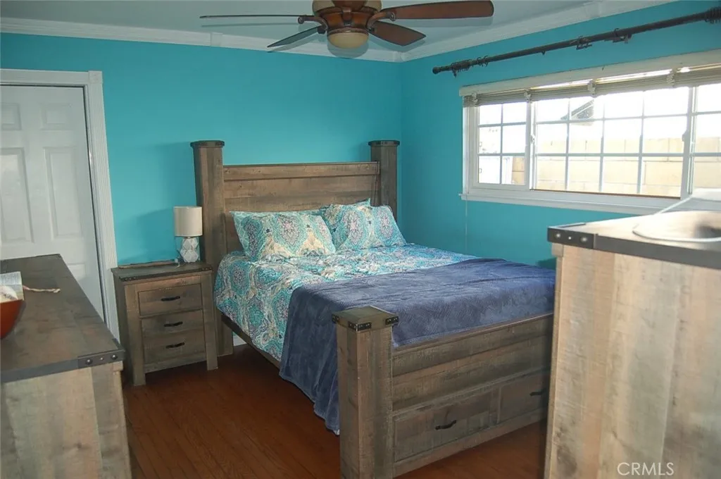 A smart buy! Welcome to this attractive single-level 4BD/2BA home in a prime location close to schools, shopping, and easy commuter access. The open, airy floor plan includes a formal living room with designer ceramic floors, a dramatic floor-to-ceiling brick fireplace, cathedral ceilings, and expansive windows. The modern kitchen features quartz countertops, stainless steel appliances including a gas range and built-in microwave, and opens to a covered patioideal for outdoor entertaining. Enjoy a private rear yard with block walls, raised planter beds, expansive low-maintenance hardscape, and a storage shed. The interior offers four spacious bedrooms, including a primary suite with private bath and walk-in shower. Situated on a 7,000+ sq ft lot with a 2-car garage and laundry hookups. Move-in ready, beautifully maintained, and includes an energy-efficient solar system. Dont miss this great opportunity!