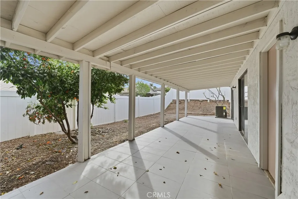 Single story twin home in the desirable 55+ Hermosa Community of Menifee with a low HOA annual fee and low taxes. Freshly painted exterior & interior, upgraded landscaping with newly installed artificial turf & wood chips and beautifully tiled patio slab. Upgrades in the last 3 years include new AC and Heating Unit and new tile flooring in both bedrooms including closets. This home has the following features: master bedroom with a walk-in closet, both bedrooms have direct access to large, covered patio through sliding glass doors, direct access from kitchen to garage, fenced back yard with direct access to garage, and mature mandarin, lemon, peach and fig fruit trees. Existing stove and refrigerator remain with the home. Conveniently located West of the 215 with minutes to shopping, restaurants, grocery stores and medical services.