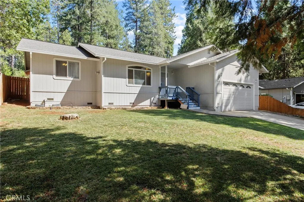 PRICED TO SELL! Welcome to this meticulously maintained home in the pines! With convenient access to Skyway, restaurants and groceries, this home features many upgrades you wont want to miss. Through the front door you are greeted into the open living space that features a vaulted ceiling, a cozy propane fireplace, and a coat closet. The kitchen boasts cherry cabinetry, newer stainless steel appliances, tiled countertops and overlooks like the dining area with a large sliding glass door to the backyard. The split floor plan allows for a private primary suite, while the two additional guest rooms are at the other end, as well as the guest bathroom. The primary suite features a vaulted ceiling, walk-in closet and attached bathroom, with a dual sink vanity, tiled step-in shower, and jetted soaking tub. An additional bonus is the indoor laundry room complete with upper cabinets and a door to the 2 car garage. The garage provides ample storage space, including ceiling mounted storage rack, and is also fully insulated PLUS has its own ductless heating and air to allow for temperature control. Out back is the low-maintenance yard that is ideal for hosting gatherings with a large concrete patio, and a lawn with plenty of room to entertain. Never go without power, as there is a 22 kw GENERAC GENERATOR that powers the whole home in the event of a power outage. Additional features of this home include a whole house fan, NEWER (installed 2022) 50 year roof, dual pane windows, blinds throughout, a wired alarm system, as well as newer exterior paint (2022) and flooring throughout. Washer