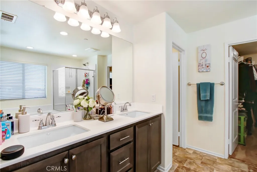 Recent Price Improvement - Beautiful 2018 two-story smart home in the sought-after Sundance Community of Beaumont, just steps from parks and association pools with low HOA. This 3-bedroom, 2.5-bath home offers a flexible downstairs office or potential 4th bedroom, vaulted ceilings, plantation shutters, and tile flooring throughout the main level. Upstairs features a spacious primary suite with walk-in closet along with his and hers sinks, which includes a beautiful master bathroom with both a tub and separate shower. Two additional well-appointed bedrooms and a conveniently located laundry room round out the upstairs. The kitchen includes a large island, farmhouse sink, and ample storage-perfect for entertaining. Step outside to a backyard built for entertaining, featuring a covered patio, a cozy gas firepit, two-large planter boxes, and a dedicated BBQ gas lineall enclosed by durable vinyl fencing with plenty of room for a future pool. Best of all, youll enjoy massive utility savings with fully owned solar panels and a whole-house water filtration system. Move-in ready!