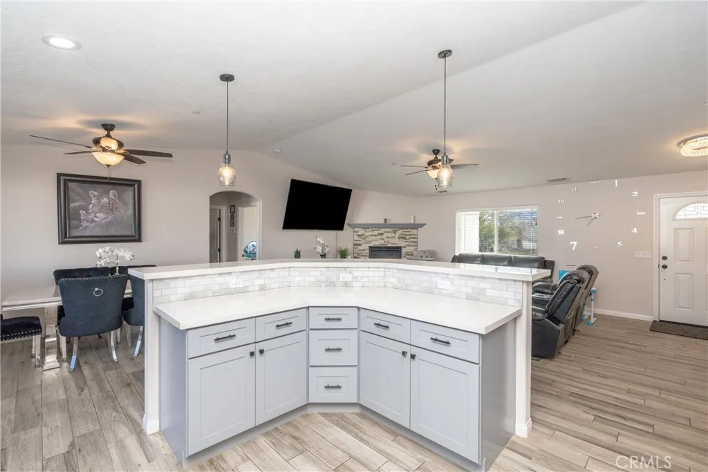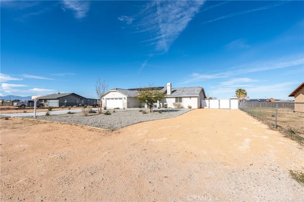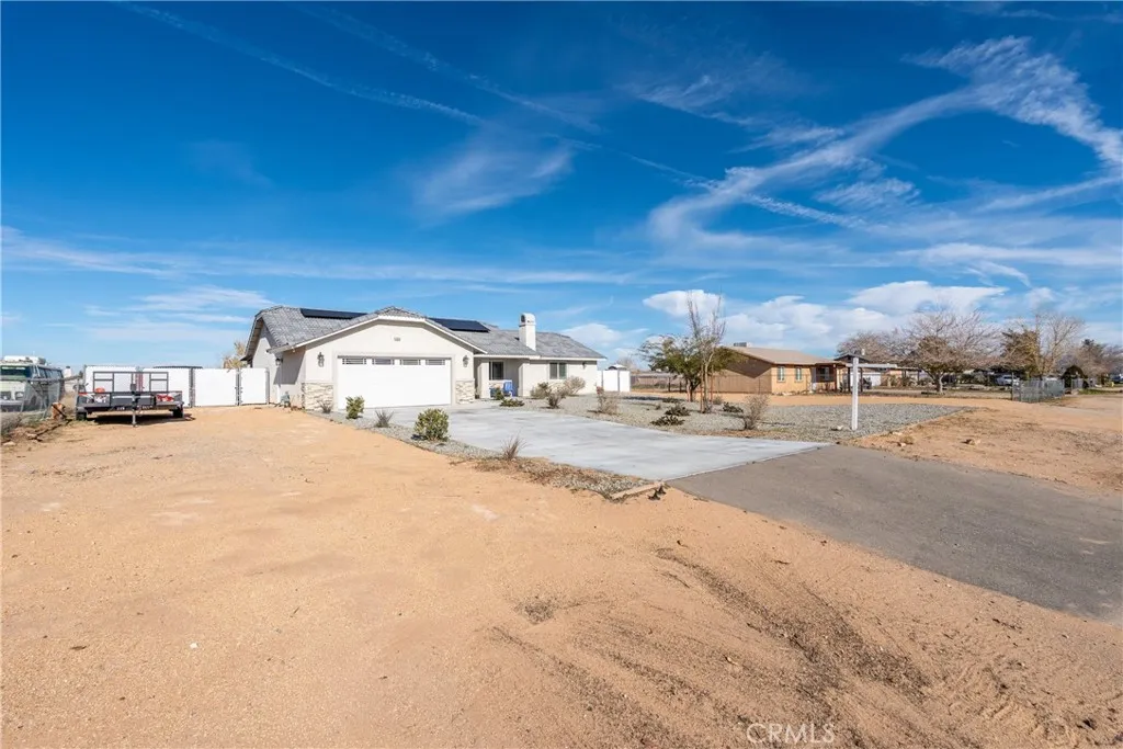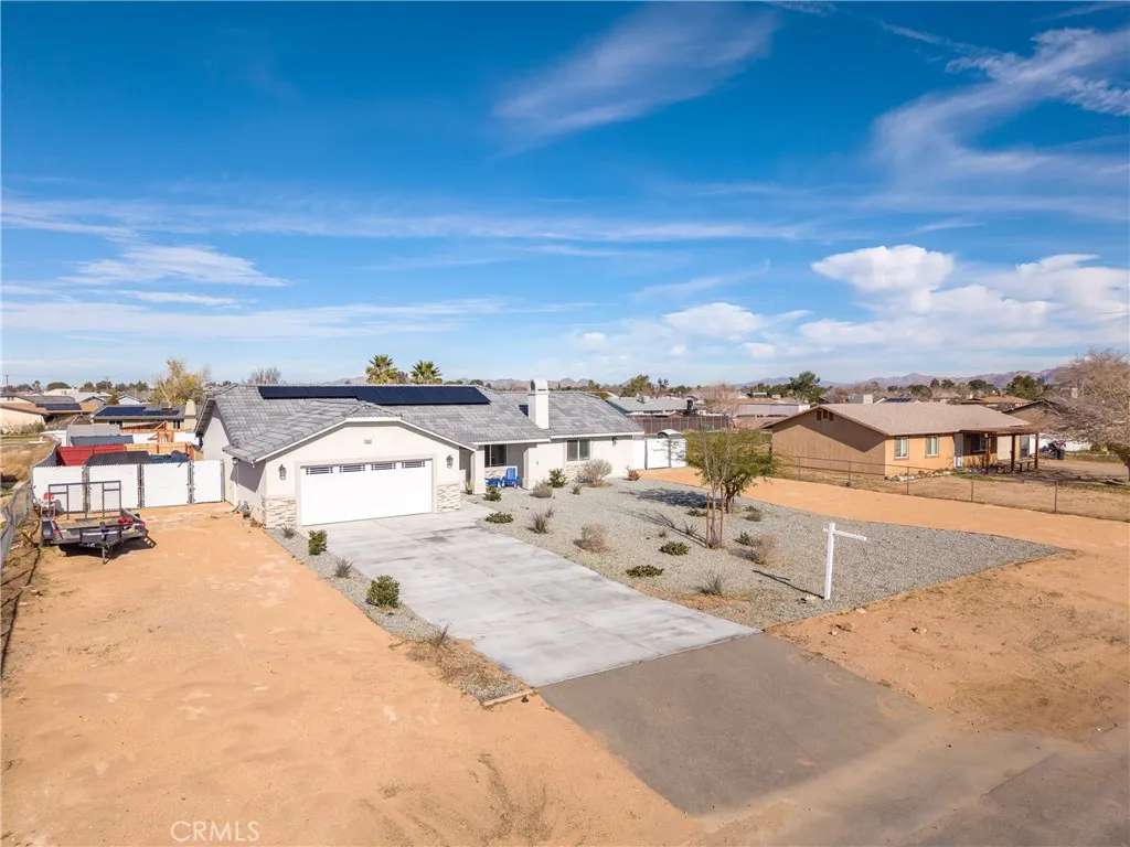 Beautifully maintained half acre ranch-style home offering 3 bedrooms and 2 bathrooms, highlighted by quartz countertops and an open-concept kitchen with a large center island ideal for casual dining and entertaining. The spacious bedrooms feature walk-in closets, and indoor laundry adds everyday convenience. The low-maintenance desert-landscaped front yard creates great curb appeal and leads to a two-car garage. RV ACCESS on both sides of the home provides excellent flexibility, while the paved backyard offers plenty of space for a boat, recreational toys, or additional vehicles. This home offers PAID OFF SOLAR. This move-in-ready home combines comfort, functionality, and versatilityan opportunity you wont want to miss.