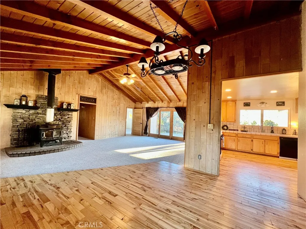 CHARMING SINGLE STORY HOME IN THE DESIRABLE PINON PINES ESTATES ON AN OVERSIZED LOT FROM STREET TO STREET!! This 4 bedroom, 2.5 bath home offers so many wonderful features including fresh interior paint, and new carpet. The inviting front porch welcomes you. As you enter you will immediately notice the beautiful vaulted knotty pine ceilings and wood accented walls plus rustic stone hearth for a grand, yet cozy mountain feel. Sliding glass doors open to an expansive deck that's great for entertaining with amazing views! The bedrooms are well appointed for privacy. On the west side of the house is the primary ensuite with sliding glass doors that open to the back deck, and the front bedroom has an attached 1/2 bath. On the east side you will find 2 more bedrooms with walk-in closets, and another bathroom with dual vanity and shower. The back bedroom also has sliding glass doors that open to the back deck. The kitchen has lots of counter space and lovely wood flooring that expands to the dining area. Just off the dining area is the attached 2-car garage. The front yard is level, sunny and fenced. The back yard slopes down to the street below which allows you access from both streets. Located in a quaint mountain community where you can enjoy a slower paced lifestyle, dark starry nights and 4 seasons of nature! Easy commute, just 40 minutes from Santa Clarita and Bakersfield makes this home a MUST SEE!