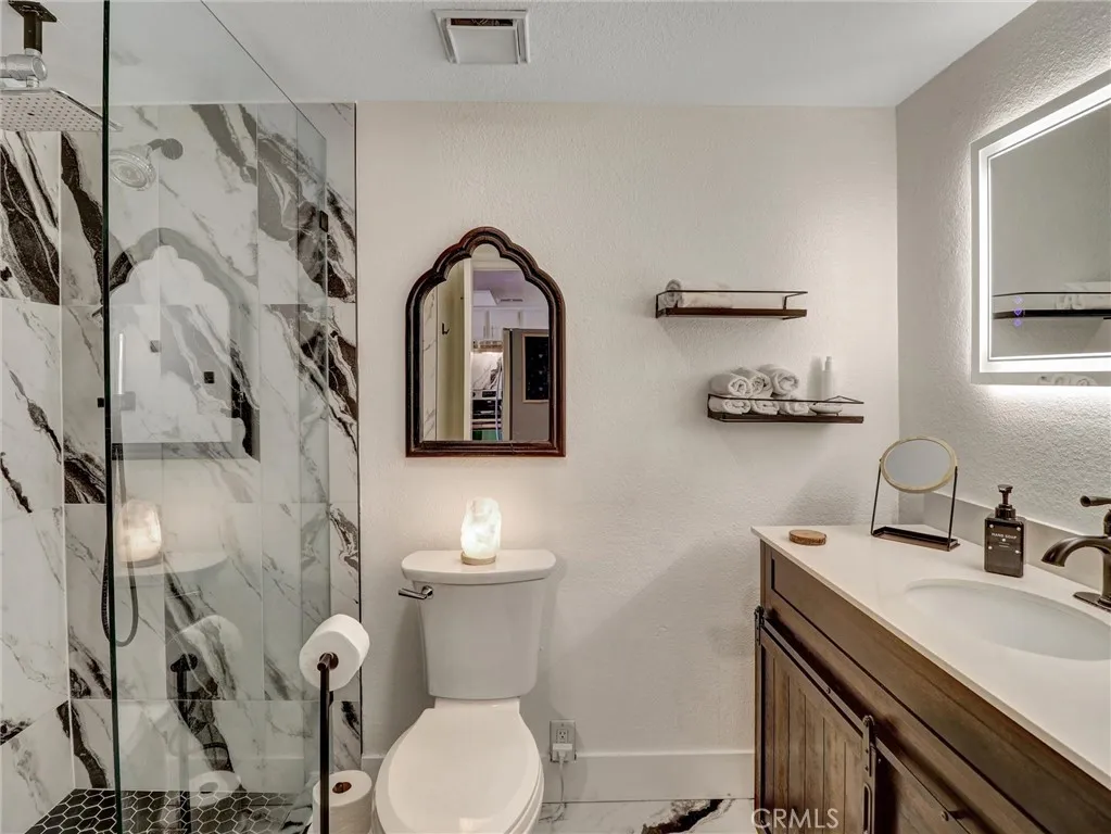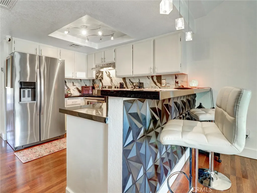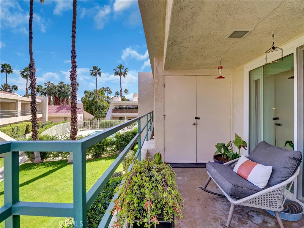 Set within the gated community of Candlewood Villas I, this thoughtfully upgraded end unit offers a rare kind of ease: a space designed for professionals who value calm, privacy, and a home that works as hard as they do. In desert living, reliability is everything. Here, the essentials are already handled. A brand new HVAC system with cleaned and sanitized air ducts, paired with a two-year courtesy maintenance agreement, ensures comfort through the most demanding summer days. A new water heater adds another layer of confidence, removing the typical what needs fixing first question from the equation. Inside, vaulted ceilings create a sense of openness without sacrificing intimacy. The kitchen is clean and modern, with stainless steel appliances, black granite countertops, and crisp white cabinetry. The bathroom has been fully refreshed with a walk-in shower, updated flooring, a new toilet, and a contemporary vanity. The bedroom suite offers its own additional vanity and sink, creating a functional, private space to start and end the day with ease. All appliances are included, along with a newer washer and dryer. As an end unit with only one shared wall, the home lives quietly. The front balcony captures west-facing mountain views and evening light, while the rear balcony overlooks the pool and greenbelt, offering two distinct places to reset. Assigned parking is just steps away. The HOA covers the essentials so your time stays your own: pool, spa, gated access, sewer, and trash. Centrally located in Cathedral City, with quick access to Palm Springs, Rancho Mirage, and Palm D