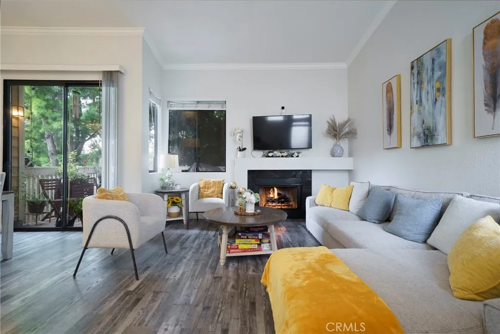 Beautifully updated, turn-key, modern 2-bedroom, 2-bath condo located in the Stonebridge community in the highly desirable Charter Oak area of Covina. Centrally situated just minutes from the freeway, this light-filled home features vaulted ceilings and an abundance of natural light, creating an open and airy feel throughout. The impeccable kitchen showcases modern finishes and thoughtful upgrades, while the cozy fireplace adds warmth and charm to the living space. Enjoy the convenience of in-unit laundry and relax on the private porch overlooking the pool and peaceful, lush greeneryperfect for unwinding or entertaining. The spacious primary suite offers a private balcony with stunning city-light and mountain views, providing a serene retreat. With extensive upgrades, exceptional condition, and a tranquil setting, this residence stands out as one of the most desirable units currently available in the community.
