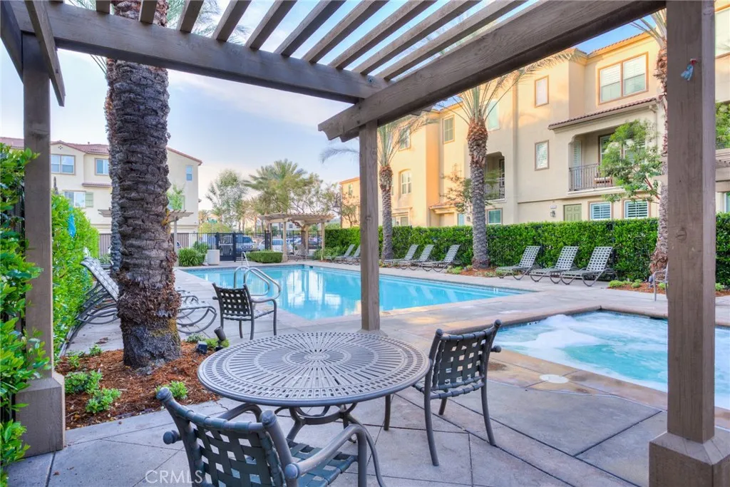 Newly Painted and Newly Installed SPC Rigid Core Wood Plank Flooring on the first Two Levels. Beautiful 2016 Built - End Unit in a Gated Nexus Community by William Lyon Homes... This beautiful Tri-level End Unit home features 3 bedrooms, 2.5 bathrooms, Plus a den and 2-car attached garage. The entry level has direct access to the 2 car garage and boasts a beautiful den area which is being used as a versatile den area. The second floor is an open concept with a large Living room, Dining room, kitchen with Granite counters, large island, white cabinetry and stainless steel appliances, and a private balcony to relax with your favorite drink. Also a convenient 2nd floor half bath. Located on the 3rd floor is the master bedroom , bathroom and a walk in closet, 2nd and 3rd bedrooms, a full bathroom and convenient laundry area. Enjoy the community pool, spa, playground and barbecue area. Walk able distance to the 24 Hours Fitness, Shops and Restaurants. Easy access to the 15 freeway and centrally located between the 60 and 91 freeways.