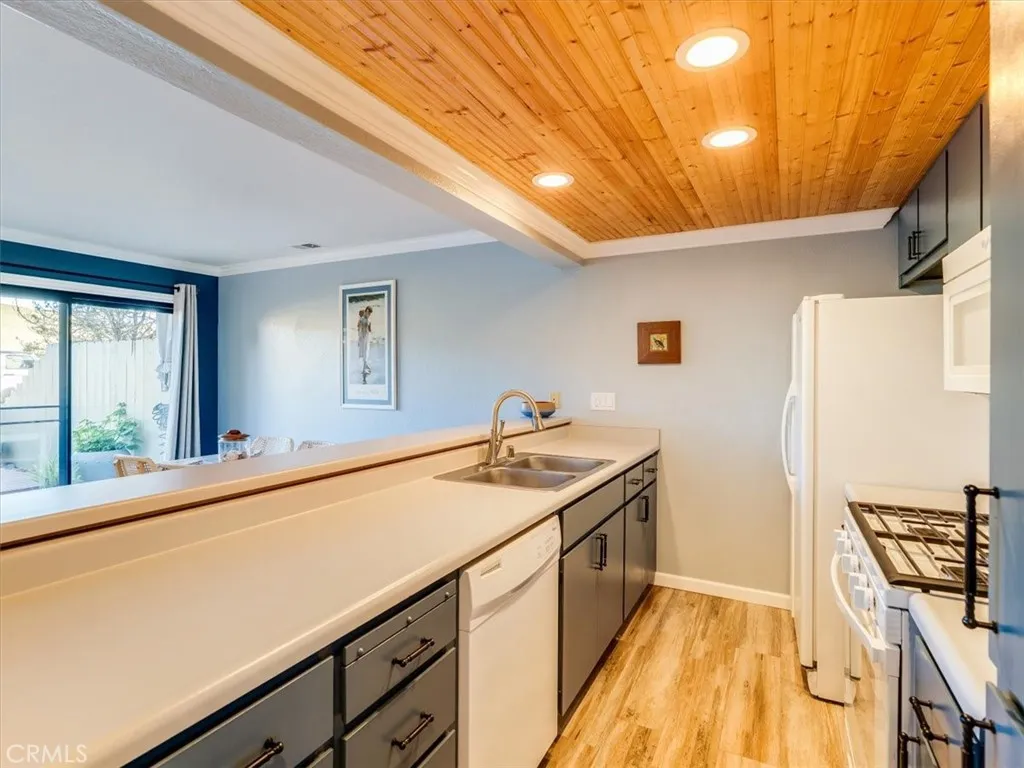 This peaceful coastal retreat offers the lifestyle youve been waiting for, where mornings begin with sunrises over rolling hills from your private back deck and evenings end with glowing ocean sunsets viewed from the spacious primary bedroom suite. Located just a short walk from the beach, the home enjoys a rare natural setting, with the Hearst Ranchprotected by a permanent conservation easementas its eastern neighbor and the occasional zebra wandering by. The three-bedroom home features a generous primary suite with high ceilings, while the living and dining rooms are anchored by a beautiful stone fireplace with a natural wood mantel, creating a warm and inviting space for reading, relaxing, or entertaining, all enhanced by soaring ceilings. Move-in ready and meticulously maintained, the home is sparkling clean and finished in a soothing coastal color palette throughout, with crown molding, Berber carpet, an updated kitchen, dual-pane windows, and a new furnace. Recent upgrades include new up-down shades in the primary suite, new blackout up-down shades in the eastern bedrooms, a new Speed Queen washer and gas dryer, and a garage with newly built shelving. Blooming roses grace both the front and back gardens, complemented by drip irrigation in the front garden. The entire complex has been freshly painted and features attractive pavers, upgraded garage lighting, and well-maintained landscaping, all supported by low HOA fees and a well-functioning association. Whether as a holiday getaway, family home, or retirement retreat, this property offers a truly desirable location an