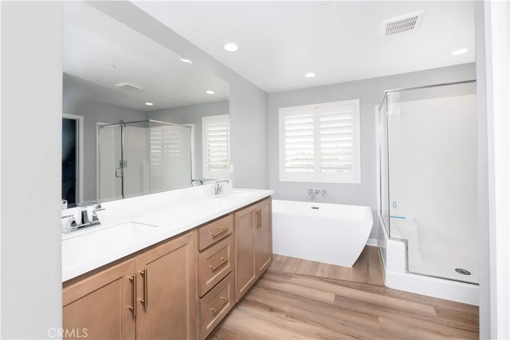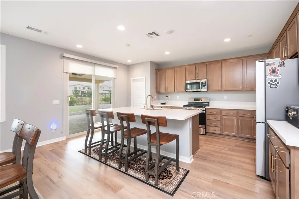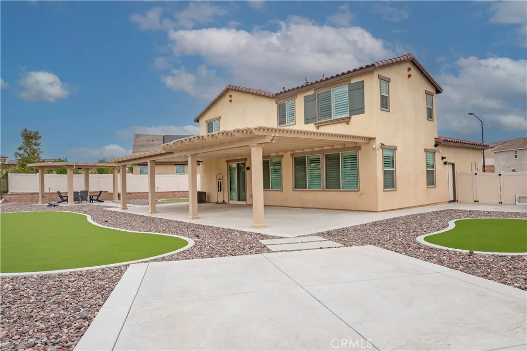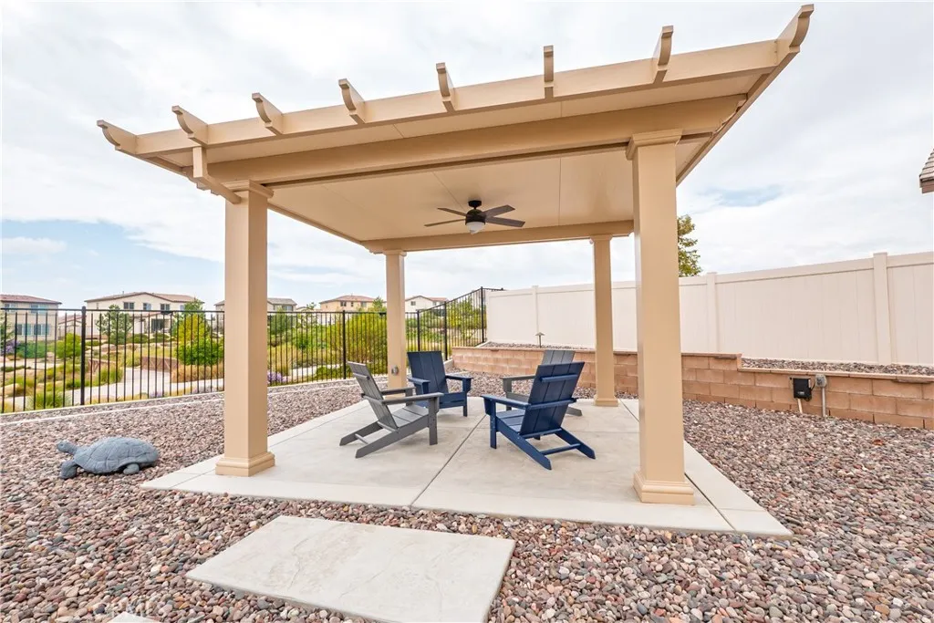 Step into modern comfort and style at this beautifully upgraded two-story home in Banning. With 2,286 sq ft, 4 bedrooms, and 3 full baths, this home was designed for both everyday living and effortless entertaining. From the moment you walk in, the open floor plan with sleek LVP flooring and plantation shutters sets the tone for a bright and welcoming space. The chefs kitchen comes complete with stainless appliances, while the great room and dining area flow seamlessly together, creating the perfect backdrop for family gatherings and celebrations. Retreat upstairs to the spacious primary suite featuring a soaking tub, separate shower, and plenty of room to unwind. Smart home features, energy-saving upgrades, and a 2-car garage with EV charger bring modern convenience at every turn. Outside, your private backyard oasis awaits with professional landscaping, extended patio cover, and freestanding lattice with ceiling fansideal for summer barbecues, quiet evenings under the stars, or hosting friends year-round. Bonus Paid off Solar! This is more than just a homeits a place where memories are made.