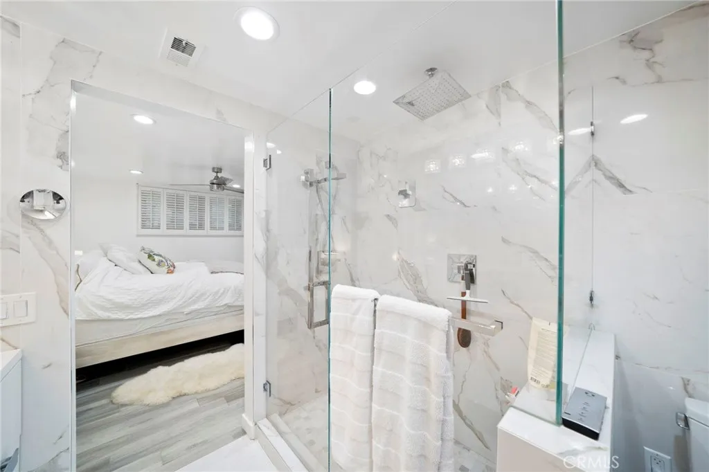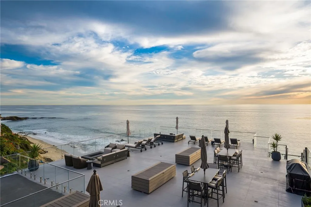 Perfectly positioned on the sand in the heart of Laguna Beach, this beautifully remodeled coastal residence is located within Laguna Sands- a private, secure, gated oceanfront community that has recently undergone a comprehensive multi-million-dollar renovation. Designed to capture the essence of refined seaside living, the interior is filled with natural light and features floor-to-ceiling La Cantina sliders that open to coastal breezes and soothing ocean sounds. Elegant wood-look porcelain tile flooring flows throughout the home, complemented by LED recessed lighting and ceiling fans that enhance the bright, airy ambiance. The gourmet kitchen is thoughtfully appointed with upgraded cabinetry, Italian porcelain countertops and backsplash, and a full suite of stainless steel appliances, ideal for both everyday living and entertaining. The spacious primary suite offers mirrored wardrobe doors with custom closet systems, while the highly upgraded, spa-inspired primary bathroom features a large walk-in shower and dual vanity sinks. The guest bathroom is equally well designed, offering a tub/shower combination, dual sinks, and a convenient stackable washer and dryer. A well-proportioned second bedroom provides a welcoming retreat for guests or flexible living space. In addition to refreshing coastal breezes, approved, permit-ready plans are available for the installation of air conditioning, should the next owner desire. Residents of Laguna Sands enjoy exceptional amenities including direct beach access, a newly renovated oceanfront swimming pool, and two expansive community te