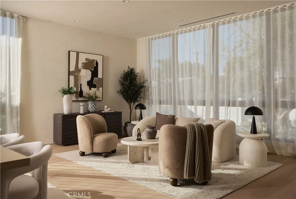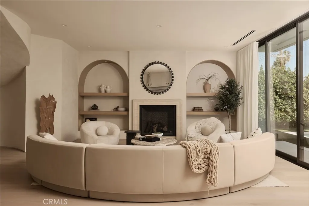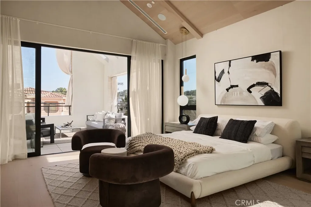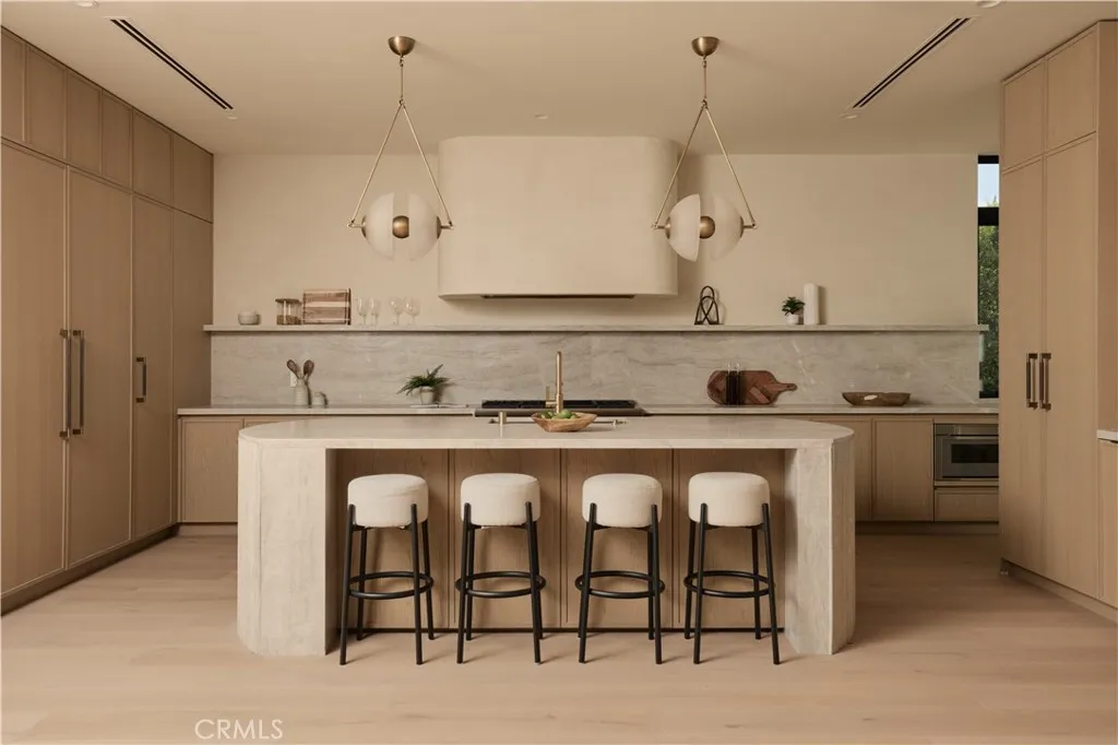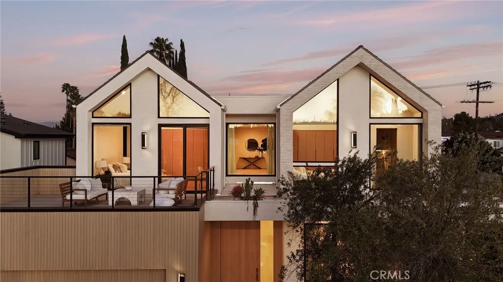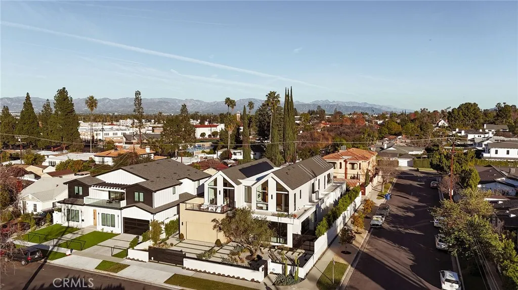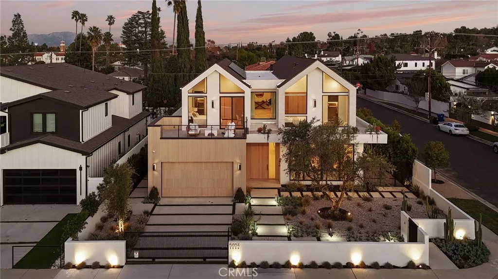 Set within one of Encinos most coveted neighborhoods, this is a newly built Scandinavian-inspired estate exemplifies modern luxury. This striking modern residence spans approximately 5,200 square feet and offers 5 bedrooms, 5.5 bathrooms, plus a private one-bedroom ADU with its own separate entrance. The interior is thoughtfully designed with soaring ceilings, a statement spiral staircase, and wide-plank French oak floors throughout. The heart of the home is a chefs kitchen featuring an oval Quartzite island, Quartzite countertops, Thermador appliances, and custom cabinetry, seamlessly opening to the backyard for effortless indoor-outdoor living. The living room is anchored by a sleek marble fireplace, while a private office provides flexibility as a workspace or optional guest bedroom. Upstairs, the expansive primary suite is a true retreat, complete with dual walk-in closets, a stone fireplace, a spa-like bathroom, and an approximately 300-square-foot private balcony overlooking the grounds. Designed for both grand entertaining and everyday enjoyment, the backyard showcases a smart-controlled pool and spa, built-in BBQ, and beautifully manicured landscaping. Additional amenities include solar panels, whole-home surround sound, EV charging stations, and a fully integrated security system. Conveniently located near highly coveted public and private schools, the prestigious Crespi Carmelite School, and Encinos top family-oriented amenities. This exceptional property presents a rare opportunity to experience elevated Encino living at its finest.