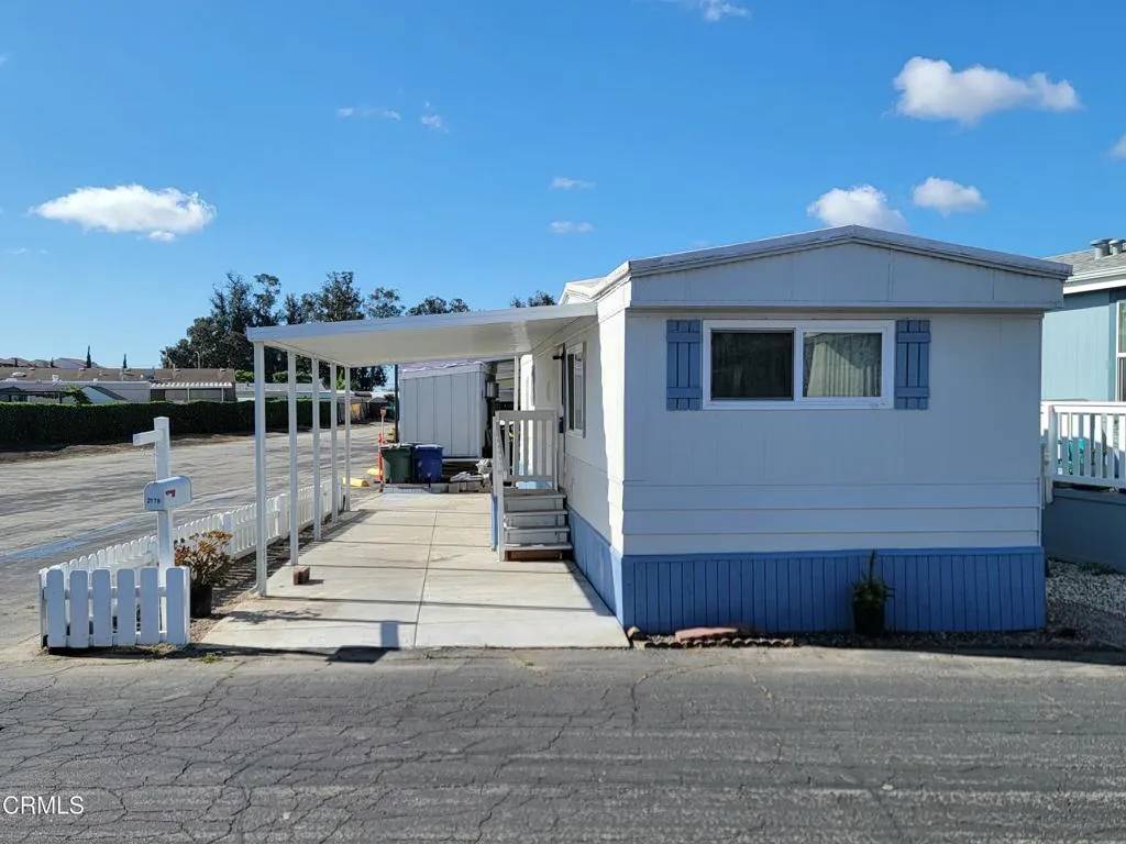 BACK ON MARKET, BUYER DID NOT PERFORM. A rare chance to live in this inviting mobile home and feel the coastal breezes. Nestled in Sunny Acres, a 55+ community known for its friendly neighbors and easygoing lifestyle, this home is all about comfort and relaxed living. With a chance to get one the best deals in town, a little imagination, and a little work to make this home exactly what you want. Wood-style flooring flows through the main living areas, while the bedrooms feel cozy with soft carpeting, and the option of putting up a wall for a second bedroom. All new piping throughout the home. A brand new parking awning, fresh paint outside, new skirting, and new rock put down all adds curb appeal. Sunny Acres offers a pool, RV storage, individual storage lockers and on-site management. The low space rent is an excellent value for all that is included. Located just three miles from the beach and about ten minutes from shopping and dining, this home blends comfort, convenience, and coastal living in a welcoming 55+ community.