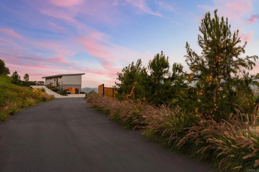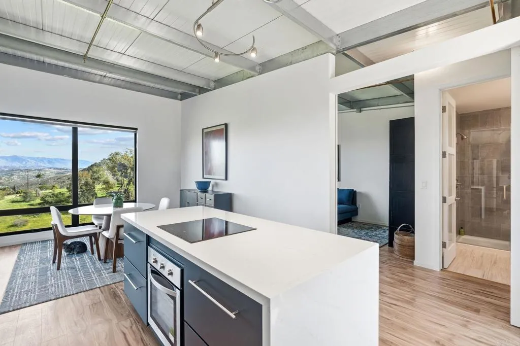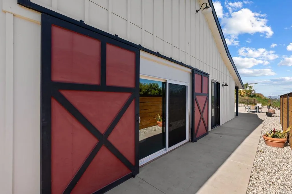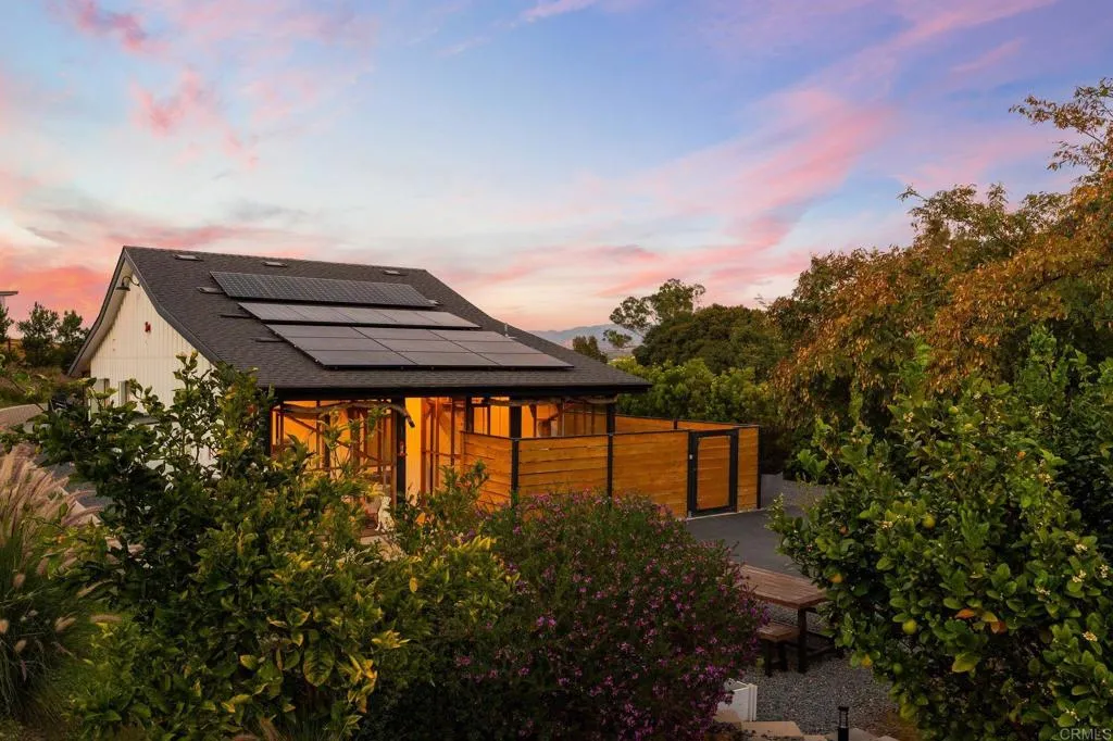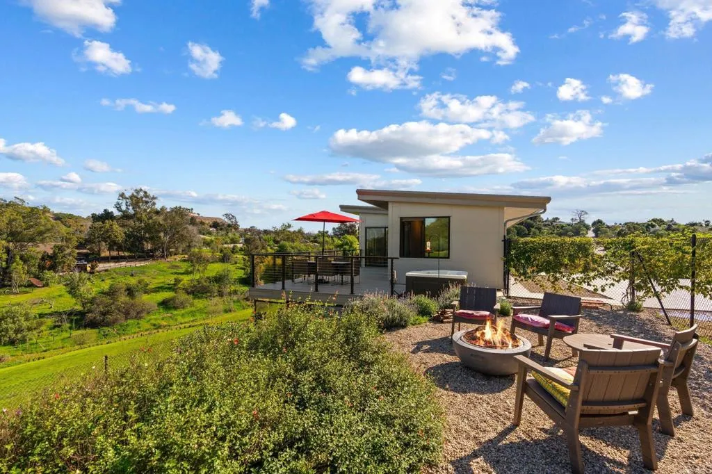 TWO HOMES | ONE PARCEL | BOTH INCLUDED IN LIST PRICE : : Distinguished in a class of its own, 693739 Kellyn Lane presents the most extraordinary opportunity in North County San Diego, offering two homes on one parcel with panoramic views, and rooted in open space, stewardship, and legacy. Set on 2.5 acres along the rolling boundary between Bonsall and Vista, this exquisite compound has never been on the market. A legacy parcel shaped intentionally by its original stewards, where sunrises spill across open pasture and evenings settle behind distant ridgelines in a kind of cinematic quiet. Anchoring the property are two distinct residences, both offering thoughtful modern efficiency and a sense of intentional design. The single-story California farmhouse, built in 2019, offers newer construction with 1 bedroom/1 bathroom, complemented by an attached barn and office space with an additional bathroom. Barn area includes 2 rooms, a garage, bathroom and animal kennels which can be converted to horse stables. Framed by a mini orchard of plum, pear, guava, strawberry guava, orange, and lime trees, with passionfruit vines tracing the pool fence, the farmhouse feels grounded, simple, and quietly abundant. Complementing it is a striking modern residence, noted as the ADU and built from eco-steel in 2023, offering nearly new construction with clean lines and expansive windows that draw the surrounding landscape inward. The main living level features two bedrooms/two bathrooms, while the lower level has been thoughtfully converted into a private studio apartment complete with a full bat