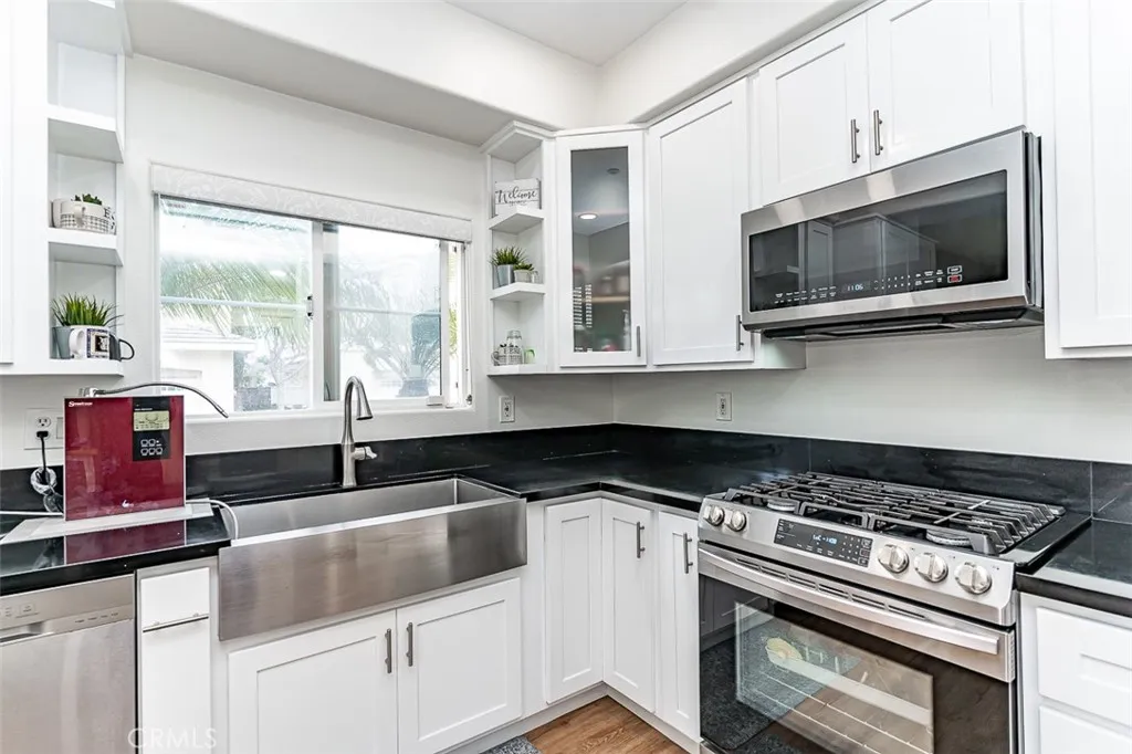 REMODELED!! THE GORGEOUS HOME IN AN EXCELLENT PRIME LOCATION IN THE CITY OF STANTON. THE HOME FEATURES A BEAUTIFUL OPEN FLOOR PLAN WITH 4 BEDROOMS, 3 FULL BATHS, AND MAIN LEVEL HAS A BEDROOM WITH A FULL BATHROOM. PROVIDING 2,146 SQFT. THE SPACIOUS LIVING ROOM HAS A FIREPLACE, LAMINATE FLOORS WITH RECESSED LIGHTING. THE KITCHEN IS OPEN TO THE DINING AREA AND FEATURES CONTEMPORARY WHITE CABINETS, QUARTS COUNTERTOPS WITH STAINLESS STEEL APPLIANCES, LARGE PANTRY ACROSS FROM THE KITCHEN. A HUGE MASTER SUITE WITH WALK-IN CLOSET. ATTACHED OVER-SIZED 2 CAR GARAGE WITH DIRECT ACCESS, 2 CAR DRIVEWAY PARKING, AND 1 ADDITIONAL PARKING SPACE AT FRONT. MUCH MORE.. A MUST SEE!!