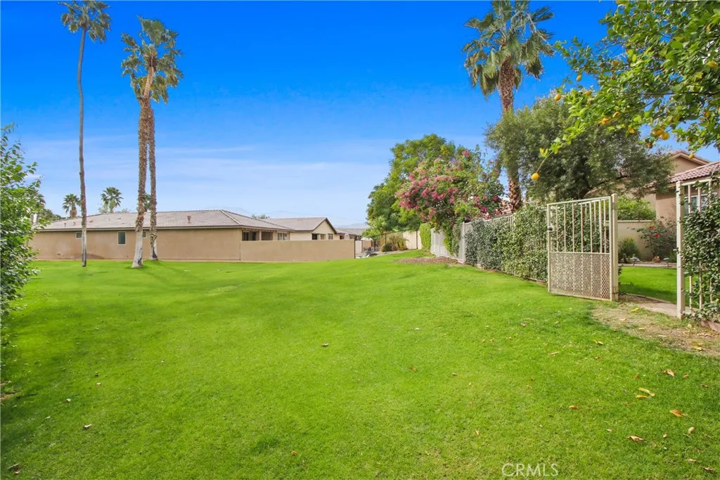 TURNKEY, APPROVED for SHORT TERM RENTAL, DIRECT ACCESS TO GREENBELT AND GOLF COMMUNITY! This beautifully 2 bedroom 2 bath home located within the Indian Palms Country Club features a spacious open-floor plan with a great room, gas fireplace, open kitchen, tile floors, high ceilings and a primary bedroom with en-suite bath. The kitchen has plenty of cabinetry, granite countertops, tile backsplash, a center island with seating and built-in appliances. The spacious primary bedroom has a large ensuite bathroom with soaking tub, walk-in shower and walk-in closet. It overlooks a private lush backyard and greenbelt. The large guest bedroom and remodeled bathroom with walk-in shower are perfect for guests. Additionally, the home has a an outdoor covered patio, a spacious backyard with direct access to the greenbelt, automatic sprinkler/drip system and a 2 car garage with an additional golf cart space. The Indian Palms Country Club Community offers amazing amenities such as a golf course, clubhouse, tennis/pickleball/bocce courts, community pool, community spa, gym, showers, fitness classes, restaurant, hotel and ground maintenance/tree trimming. Enjoy the best Indio has to offer located just minutes to hiking trails, casinos, restaurants and Coachella!
