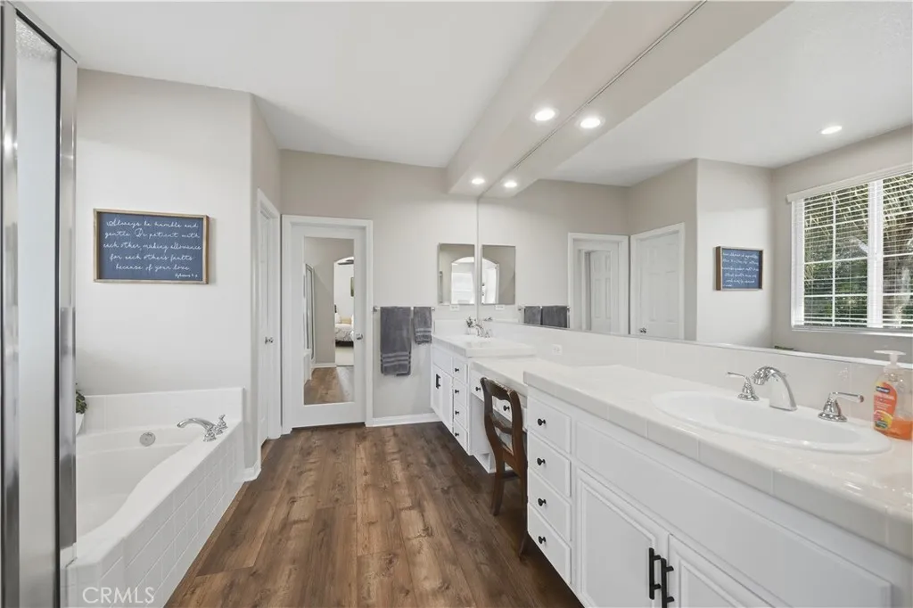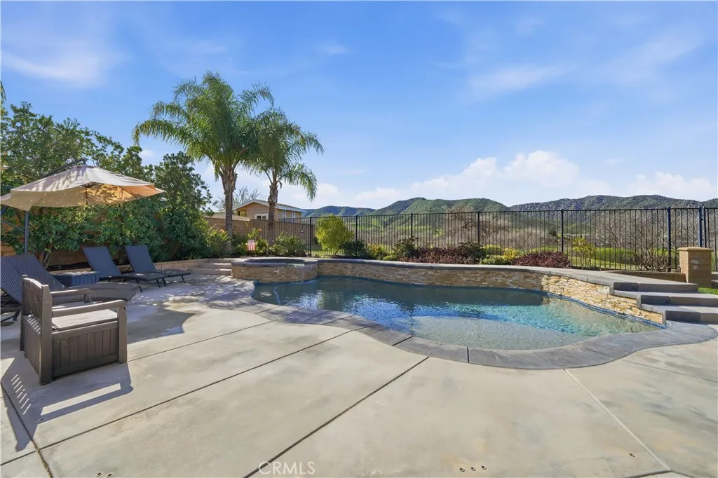 Welcome to this stunning 5-bedroom, 3-bath home nestled in one of West Murrietas most desirable neighborhoods, backing directly to Murrieta Creek with no neighbors behind and sweeping views toward the Santa Rosa Plateau. This beautifully upgraded, move-in-ready residence offers privacy, space, and an exceptional layout designed for both everyday living and entertaining. Inside is an expansive, light-filled floor plan featuring a formal living room and formal dining room, ideal for gatherings and special occasions. At the heart of the home is a newly remodeled kitchen with brand-new countertops, a huge center island with bar seating, high-end new appliances, and abundant cabinetry. The kitchen flows seamlessly into the family room, creating a warm and connected space. The MAIN LEVEL INCLUDES A FULL BED AND BATH, luxury vinyl plank flooring, and a convenient indoor laundry room. At the top of the stairs, you'll find a spacious primary suite featuring a private retreatperfect for quiet times with morning coffee or evening wine or can be a home office or infant room. (the retreat can easily be convertible into a 6th bedroom with its own separate hallway entrance) The hallway bathroom has been refreshed with new faucets and newly painted cabinetry. The 3-car garage includes built-in shelving and a workbench, offering excellent storage and functionality. A major highlight of the home is the PAID SOLAR, providing long-term energy savings and efficiency. Out back is your own private resort-style yard, complete with a pool and spa, a solid covered patio, and a built-in BBQ/kitchen w