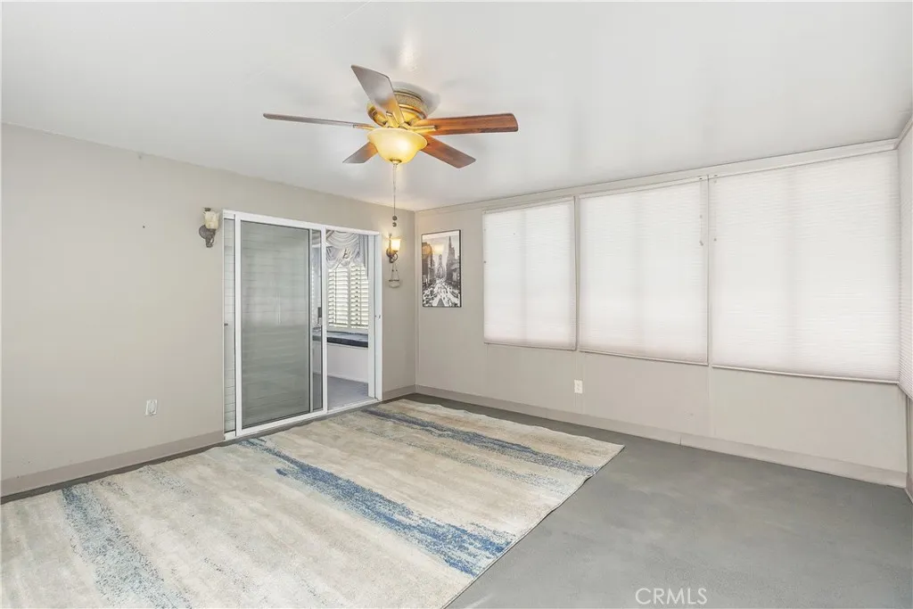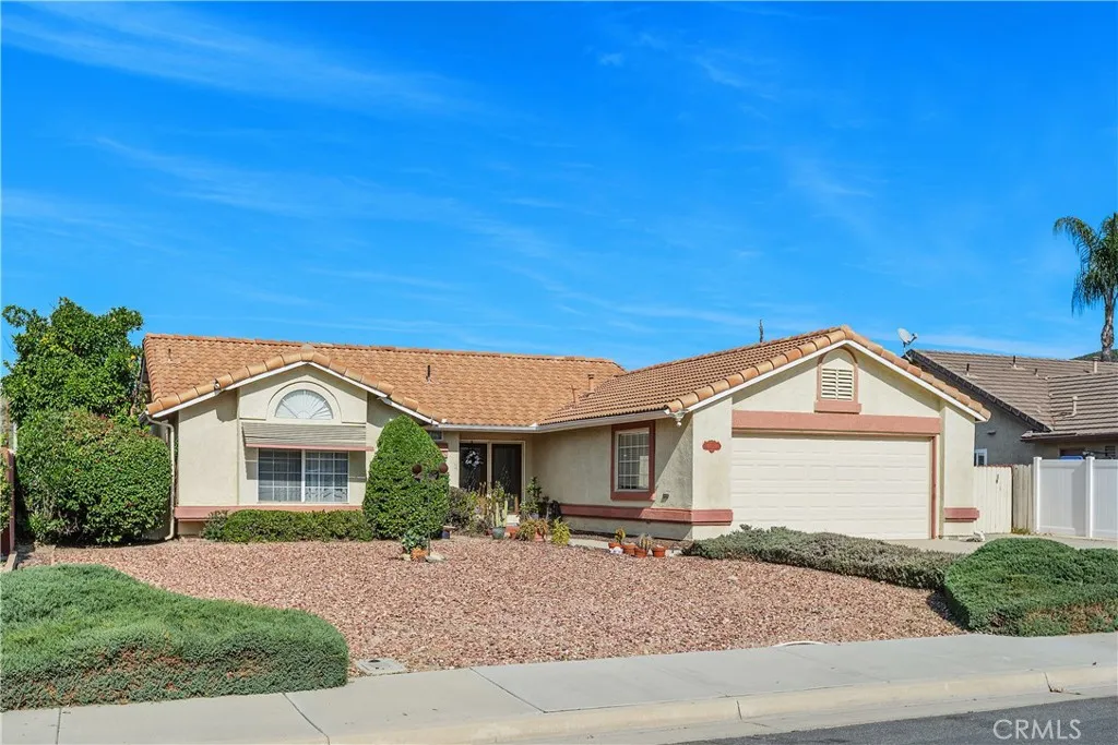 Back on the Market! Featuring new photos and an updated interior with fresh paint and carpet, this 2-bedroom, 2-bath single-story home offers 1,770 sq. ft. of comfortable living in the desirable 55+ Serenade community in Menifeewith no HOA dues. The property also includes RV access, parking, and hook-ups. Step inside to a bright, open floor plan with high ceilings, a formal dining area, and a spacious living room centered around a cozy fireplace. Plantation shutters throughout add style and privacy. A sliding glass door leads to a permitted sunroom with new flooring, creating a space ideal for relaxing, reading, or entertaining. The sunroom conveniently connects both the living room and backyard patio. The kitchen is designed for both function and comfort, featuring Corian countertops, tile flooring, ample cabinetry, and space for a breakfast nook. A sliding door provides direct access to the covered patio, complete with an Alumawood cover for outdoor enjoyment year-round. Adjacent to the kitchen, the indoor laundry room includes a washer and dryer and offers direct access to the attached two-car garage. The garage is well-equipped with a workbench, shelving, utility sink, and additional storage. The generously sized primary suite includes a cedar-lined closet and an en-suite bathroom with dual sinks, high windows for natural light, a walk-in closet, and a relaxing hydro-massage tub. The guest bedroom features high ceilings and is located near a separate full bathroom, making it ideal for visitors or a live-in caregiver. Outside, the front yard is designed for low-maintenan