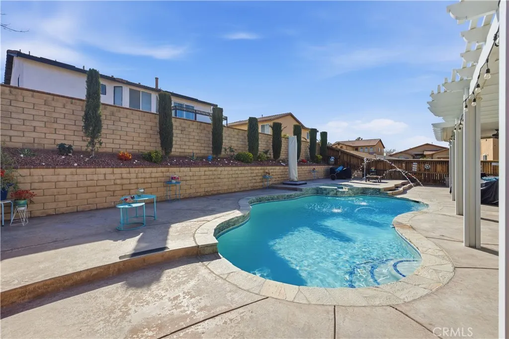 Welcome to this beautifully upgraded 5-bedroom, 4 bath residence offering 3,444 sqft of spacious living in a prime Victorville location. Designed for comfort and versatility, this home features a convenient first-floor bedroom, ideal for guests or multigenerational living.Step inside to discover an open and functional layout complemented by newly updated bathroom flooring along with newly installed quartz countertops along not to mention modern sinks. Abundant natural light throughout. The home is equipped with solar panels, providing energy efficiency and long-term savings. Entertain year round in the backyard oasis complete with a sparkling pool and relaxing jacuzzi, covered patio adding extra in comfort in the summer heat.Perfect for gatherings or unwinding after a long day. The 3 car garage boasts a sleek epoxy-coated floor, adding both style and durability. Located close to shopping, dining, schools, and commuter routes, this home combines space, upgrades, and location making it a true Victorville standout. Dont miss the opportunity to own this exceptional property.