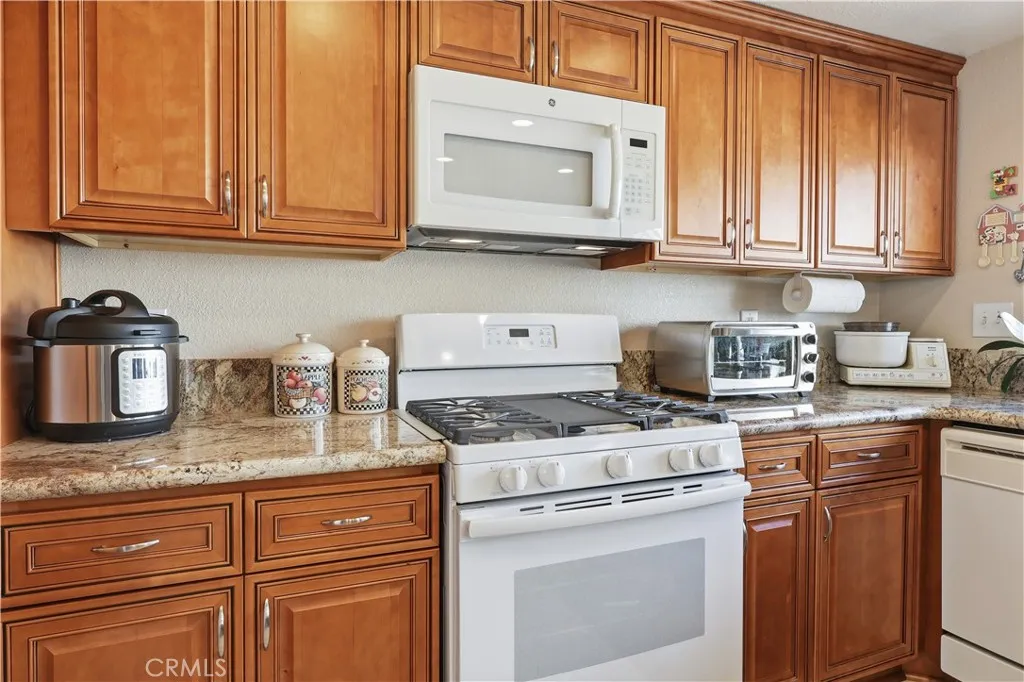 Come check out this fully updated townhouse located in the highly desirable Benton Way Estates! Step inside to a spacious living room with wood laminate floors. The eat-in kitchen boasts a beautiful view of the enclosed patio. The kitchen has been updated recently with solid wood cabinets and granite countertops and recessed lighting. The two well-appointed bedrooms also feature wood laminate floors. The primary bedroom is generous in size with an ensuite bath with a step-in shower and updated vanity with a granite countertop. There is a large patio with several well established plants - a delightful spot to have a table and chairs! The attached 2-car garage contains washer and dryer hookups. The community amenities feature a pool and spa, along with a clubhouse and several walking paths throughout. The HOA maintains the exterior walls, roofs, and landscaping. Water/sewer/trash is also included. Come check it out; this will not last!