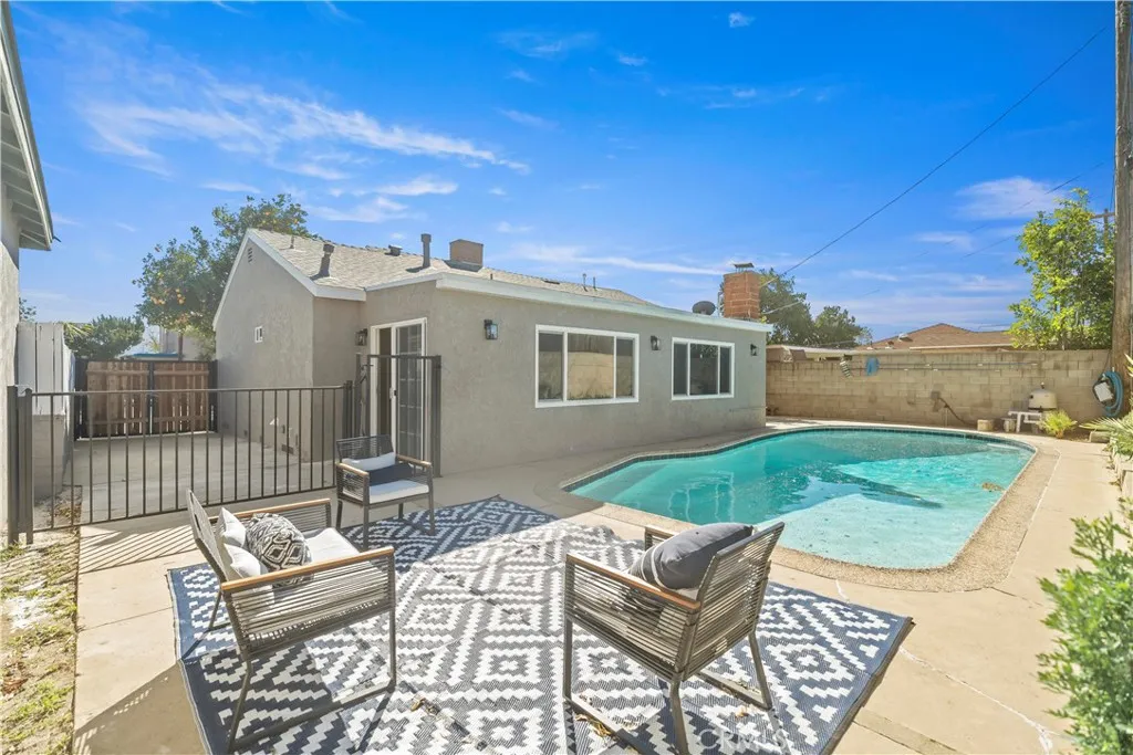 Welcome to 14519 Dyer St in Sylmar A fully remodeled, move-in ready pool home featuring a permitted 4-bedroom, 3-bathroom floor plan with an oversized primary suite and another en-suite bedroom. This home has been completely renovated with major system upgrades, including a new electrical panel, new HVAC system, and new windows for improved comfort and energy efficiency. Interior upgrades include new waterproof flooring, a brand-new modern kitchen, and fully remodeled bathrooms with stylish finishes throughout. The open-concept design offers a spacious kitchen with center island that flows seamlessly into the family room perfect for everyday living and entertaining. Step outside to your private backyard oasis featuring a swimming pool and mature fruit trees, including orange, tangerine, and guava trees. Conveniently located near parks, schools, shopping, dining, and major freeways, offering both neighborhood charm and easy commuting access. A rare opportunity to own a fully upgraded home with resort-style outdoor living.