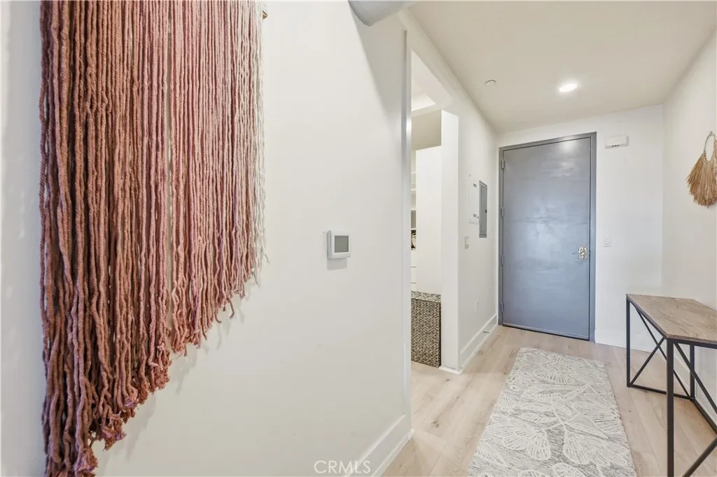 Welcome to 433 Pine Ave #201, a California coastal inspired loft in the heart of Downtown Long Beach, where the citys energy lives right outside your door and your home feels like a calm retreat the moment you enter inside. Spanning approximately 1,110 sqft, this open-concept space delivers the volume owners crave, soaring ceilings, an airy layout, and an elevated design palette that feels clean, modern, and intentional. Brand new white oak inspired LVP flooring runs throughout the unit only interrupted by the tile floors in the bathroom, complemented by new fresh interior paint and recently updated lighting fixtures that enhance the lofts bright, coastal feel. Oversized double-pane, double slider aluminum doors open to your private balcony, creating a true indoor-outdoor flow and filling the space with natural light. Whether youre starting your morning with coffee and a breeze or winding down after a night out, this home gives you the rare mix of connection and escape. The kitchen keeps the look sleek and functional with European-style cabinetry and stainless steel appliances, while the thoughtful storage and daily comforts set this loft apart, a walk-in closet, in-unit laundry, and central heat and air for year-round comfort. The building itself was fully transformed into modern loft residences, completed in 2017, and offers controlled access with the convenience of phone-enabled entry. HOA dues include water, sewer, and trash, plus lifestyle-focused amenities like a top-floor open atrium with lounge seating and tables, secured bike storage, and modern common area touches