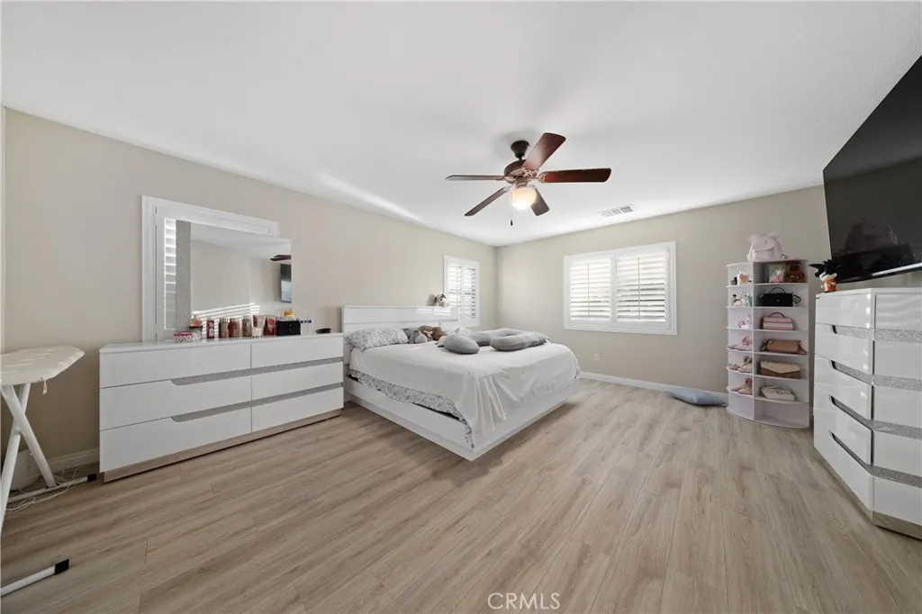 Welcome Home to Your Personal Sanctuary Imagine ending each day in your own private resort. This meticulously upgraded 5-bedroom, 3-bathroom home spanning 3,334 square feet invites you to experience a lifestyle where every detail has been thoughtfully designed for comfort, elegance, and effortless living. Step inside to discover designer interior paint that sets a sophisticated tone throughout, while upgraded flooring creates a seamless flow connecting each beautifully appointed space. Plantation shutters frame your windows with timeless elegance, offering the perfect balance of natural light and privacy. The versatile flex room adapts to your lifehome office, gym, playroom, or creative studiothe possibilities are yours to define. The heart of this home extends beyond its walls to a backyard oasis that will redefine how you spend your time. A custom pool and hot tub await, surrounded by stamped cement that adds both visual artistry and lasting durability. The expansive covered patio provides your outdoor living room for every seasonmorning coffee, family barbecues, or starlit evenings gathered around the natural gas fireplace. Energy efficiency meets modern living with fully paid-for solar panels, delivering substantial savings month after month while reducing your environmental footprint. RV or boat parking means your adventure vehicles have a home too, ready for your next escape. This isn't just a house with impressive featuresit's where your life's best moments will unfold. From poolside laughter with friends to cozy fireside conversations with family, from peaceful morn