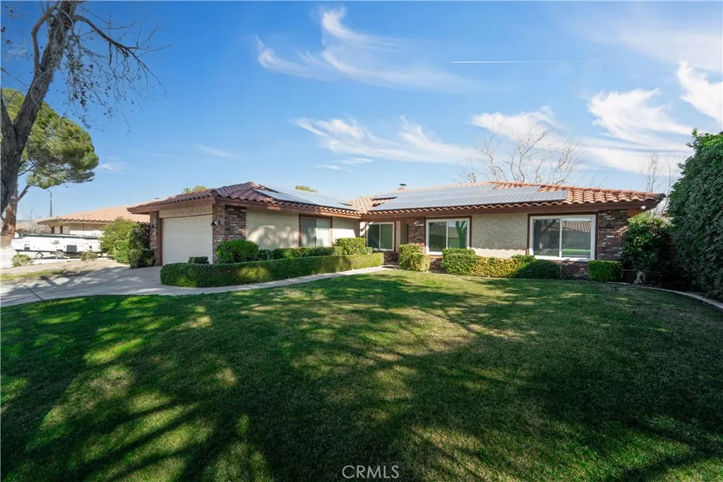 INCREDIBLE OPPORTUNITY! This beautifully maintained Lancaster home offers energy efficiency and comfort with paid off solar panels a new HVAC system and a prime location near the Desert Woodland Reserve. Inside you'll find three spacious bedrooms and two fully upgraded bathrooms featuring a stunning tile walk in shower with glass doors in the primary bathroom and a recently remodeled guest bath with a tiled shower tub combo and built in seating. The kitchen is equipped with brand new professional grade appliances, including a built-in wine/beverage cool, and the refrigerator washer and dryer are included adding exceptional value. A striking dual sided fireplace creates a warm focal point perfectly shared between the living room and family room for both everyday living and entertaining. Outside enjoy mature landscaping in both the front and backyard along with a large storage shed on the side yard ideal for tools equipment or extra storage. This home blends thoughtful upgrades functionality and a desirable natural setting making it a true must see. Please call for your appointment today.