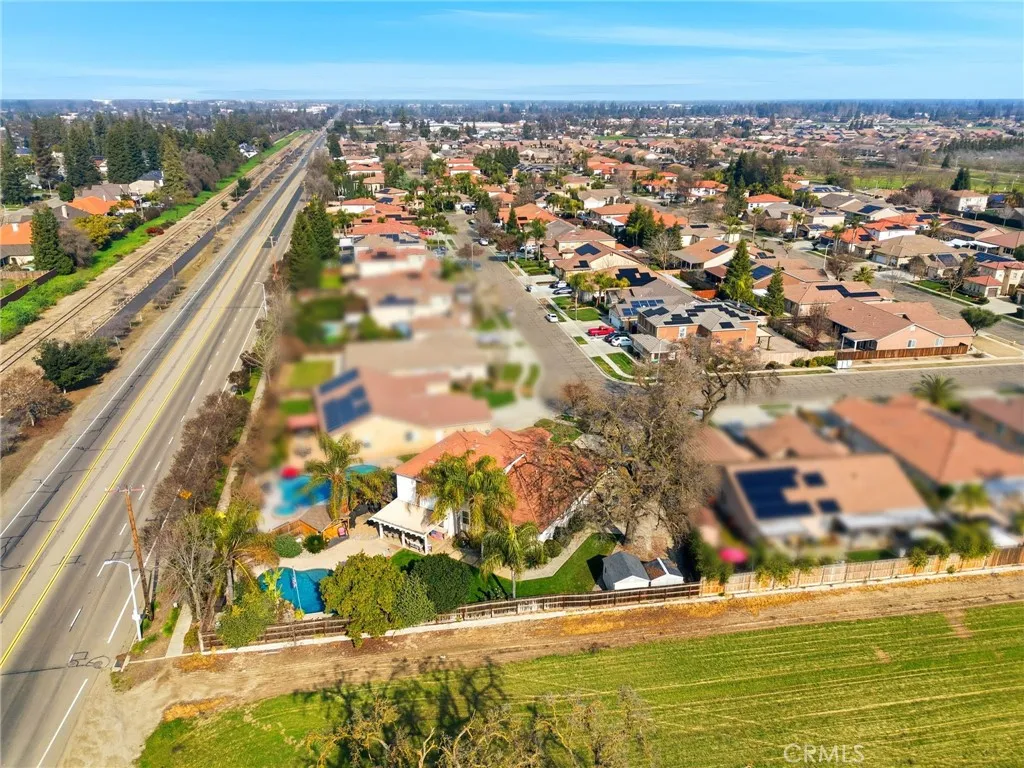 Positioned in a quiet corner of a well-established Visalia neighborhood, this home offers the perfect balance of space, comfort, and outdoor living. Mature landscaping, a welcoming front entry, and a quiet street set the tone, while the proximity to shopping, dining, and everyday conveniences makes daily life effortless. Inside, the home opens to two generous living spaces designed for both everyday living and entertaining. The kitchen and main living areas flow seamlessly, creating an inviting hub for gatherings. The primary suite is conveniently located on the main level and serves as a true retreat, complete with a private office or sitting area directly off the bedroom. Upstairs, the remaining guest bedrooms offer privacy and separationideal for family, guests, or flexible use. Step outside to a backyard built for year-round enjoyment. The pool features a heater for extended use, surrounded by ample patio space for dining and entertaining. A pergola adds shade and charm, while the expansive lot allows room for RV parking and additional storage. Whether hosting summer gatherings or enjoying quiet evenings at home, this backyard delivers both function and relaxation.