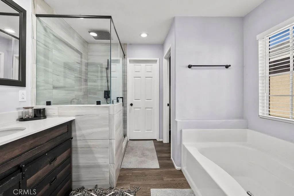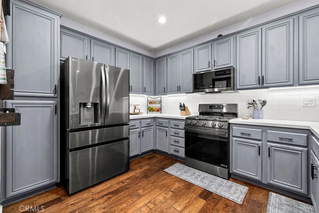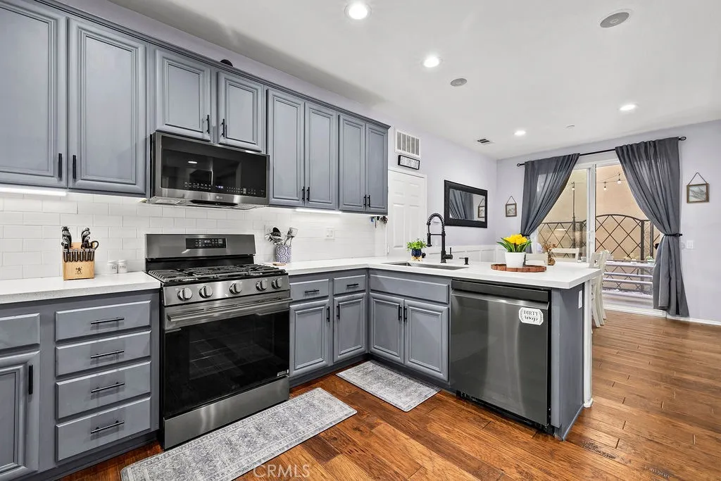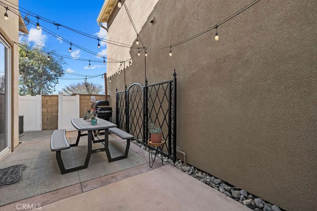 Beautifully upgraded home in the gated community of Liberty Square, ideally positioned in a coveted parkside location facing the community playground and greenbelt perfect for enjoying outdoor living and neighborhood connections. The home features a charming white picket fenced yard, inviting porch, light-filled living room with fireplace, updated flooring, and new kitchen countertops. The kitchen also offers updated cabinetry, ample storage, generous counter space, and a dining area overlooking a private patio. Upstairs includes two spacious secondary bedrooms, laundry room, and a large primary suite with a recently remodeled bathroom featuring upgraded finishes, soaking tub, separate glass shower, and walk-in closet. Residents enjoy gated security, BBQ and picnic areas, basketball court, gazebo, and lush greenbelt spaces. Turn-key and move-in ready.