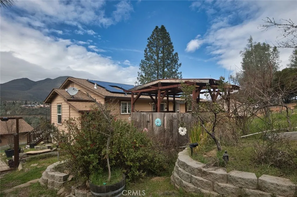Privacy, views, owned solar, and a bonus lot! Tucked into a peaceful, desirable Kelseyville neighborhood, this well-maintained home offers a private, serene lifestyle with thoughtful upgrades throughout. Inside, an open, light-filled layout features two spacious primary suites, each with its own walk-in closet and bathroom ideal for flexibility, guests, or multi-generational living. A bonus space near the kitchen easily adapts to a home office, dining, or guest area. Step outside to enjoy Mt. Konocti views and peek-a-boo lake views from the deck, unwind in the shaded gazebo, or tend to the raised garden beds and fruit trees. Owned solar with Tesla backup battery, new vinyl flooring, fresh interior paint, and a large detached two-car garage add comfort and peace of mind. A separately accessed adjoining bonus lot brings the combined property to nearly half an acre, offering privacy, space, and future potential. Close to shopping, schools, wineries, and dining this home is designed for easy living and connection to nature. This is the kind of home where mornings are quiet, evenings are peaceful, and space, privacy and flexibility come standard. Schedule your private showing today!