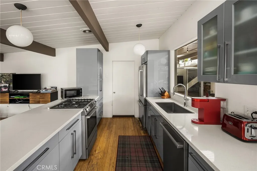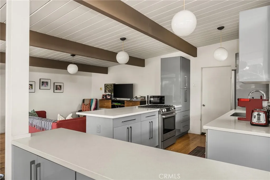 Living in a home that is an architectural design statement is one of life's joys, and here is your opportunity to do just that. With wonderful, abundant natural light and light terrazzo tile flooring, this vibrant 4 bedroom, 1.75 bath Eichler classic, plan LA-4E by architects Anshen & Allen, brings all the sunlight and beauty of the outside in. It has great positioning on a huge 9,148 square foot lot, and per the prior owner was once featured in the pages of Sunset Magazine. Enter directly into Eichler's signature sky-view, open-air atrium with soothing water feature, perfect for casual summer dining or a relaxing cup of morning coffee. The spacious kitchen was remodeled in 2015 and includes a 5-burner Bosch stove, quartz counters and sleek, modern powder-gray cabinetry with soft-close drawers. The entire back of the house takes in the panorama of the recently remodeled huge backyard pool, with a cozy firepit area for snacks and drinks after a big family summer party. The master bath has an open, step-in shower and walk-in closet. Additional mini-split wall units were added by the current owner to offer personalized home heating and cooling capabilities. Imagine sitting in your front bedroom/office and being able to see all the way through your house into the backyard, through walls of glass! This Modernist beauty in the Fairhaven Eichler tract is located just a short distance to the popular Esplanade walking trail, and just a mile from dozens of shops and restaurants along the Chapman Ave. corridor.