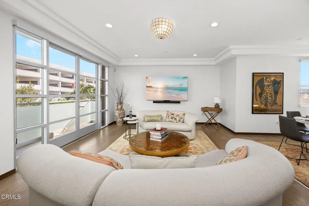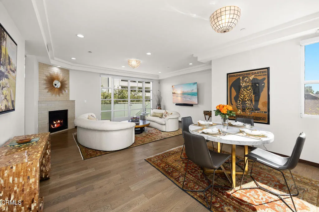 Inspired by Bauhaus architecture, Hudson Terrace is a modern luxury penthouse built in 2009 in Pasadena's vibrant South Lake Avenue District. Ideally positioned across from the Pasarroyo Business Complex and 1 block from dining, shopping, and fitness--including Trader Joe's, Erewhon, Macy's, and LA Fitness--this front‑facing penthouse offers exceptional urban convenience in one of the city's most desirable neighborhoods. The exterior features a Trespa Meteon rain shield system, ivory brick and stucco detailing, sandblasted glass balcony railings, and expansive floor‑to‑ceiling windows that fill the home with natural light. Spanning three levels with no common walls, the residence provides loft‑like living experience. The dramatic living room showcases resurfaced hardwood floors, a precast stone corner fireplace, French Deco capiz shell sconces, custom Hunter Douglas roller blinds, and floor‑to‑ceiling dual‑paned glass doors opening to a balcony overlooking oak‑lined Hudson Ave. Updated electrical circuitry and Lutron Caseta dimmer‑controlled recessed lighting enhance the modern ambiance. An elegant guest bath with marble counters and intricate tilework completes the main level. The gourmet kitchen features sleek Italian‑designed cabinetry, honed black granite countertops, a Bertazzoni gas range and hood, Bosch stainless steel appliances, filtered water at both sink & refrigerator, a walk‑in storage room, utility closet, and a dedicated balcony with stainless FireCraft smoker grill. The primary suite offers va