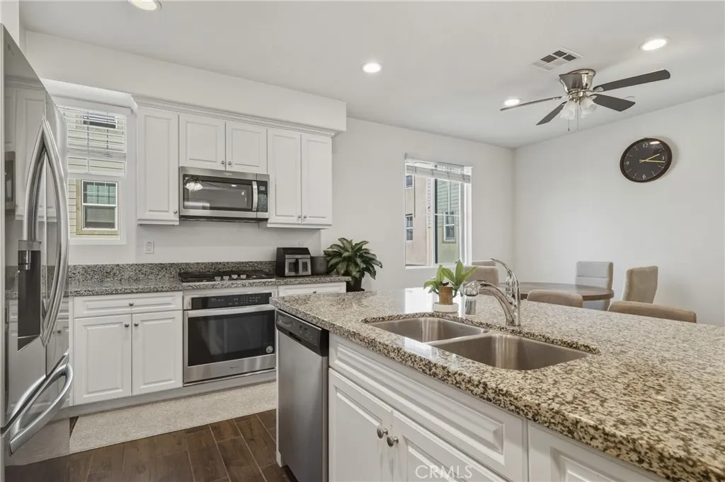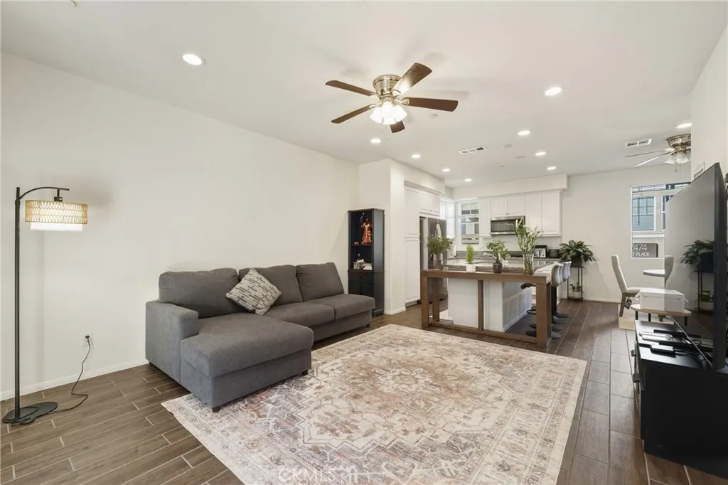 Welcome to this beautifully designed three-level townhouse located in the desirable Day Creek Square community, offering modern comfort and a functional layout ideal for todays lifestyle. This well-maintained home features 3 bedrooms, 2.5 bathrooms, and 1,614 square feet of living space, along with a two-car attached garage. The first level features a private office with direct access to the garage, providing an ideal space for working from home, a guest retreat, or flexible use with added convenience. The second level showcases the homes main living area, featuring a spacious family room, open-concept kitchen, dining area, and a powder room. This level is designed for both everyday living and entertaining, and is complemented by a large balcony that offers ample outdoor space for relaxing or hosting guests. The third level offers a thoughtfully arranged bedroom layout, featuring the primary suite along with two additional bedrooms and a full bathroom. The primary suite includes a walk-in shower, and generous closet space. Residents of Day Creek Square enjoy resort-style amenities including a pool, spa, tot lot, BBQ and picnic areas, and beautifully maintained greenbelts. The community is ideally located near Victoria Gardens, offering convenient access to shopping, dining, and entertainment, and is served by the highly rated Etiwanda School District. This home offers an exceptional combination of location, layout, and lifestylea fantastic opportunity not to be missed.