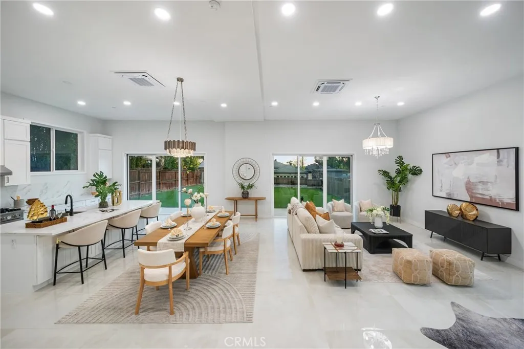 This brand-new, ground-up construction completed in 2025 delivers elevated modern living in a prime Northeast Los Angeles hillside setting. Thoughtfully designed with clean architectural lines and intentional indoor-outdoor flow, the home offers approximately 2,550 square feet of refined living space with 4 bedrooms and 3.5 bathrooms. The main level features a private en-suite bedroom with a full bathroom, ideal for guests or multi-generational living, with sliding glass doors opening directly to the outdoor space. At the heart of the home, the kitchen, dining area, and family room are unified beneath dramatically high ceilings, enhanced by expansive windows that flood the space with natural light. Two tri-fold sliding doors create a seamless connection to the backyard, making the layout equally suited for everyday living and effortless entertaining. The kitchen is both functional and elegant, showcasing quartz countertops, premium stainless-steel appliances, custom cabinetry, and a generous center island that anchors the open living space. Upstairs, the primary suite offers a private retreat with a spa-inspired bathroom and its own exclusive balcony, providing a quiet escape with open views. A secondary upstairs lounge area also opens to a balcony, adding flexibility and additional outdoor living space. All guest bedrooms enjoy open sightlines and pleasant views, reinforcing the homes airy and elevated feel. Designed with energy efficiency, smart home features, and quality craftsmanship throughout, the property offers exceptional outdoor potential. The expansive, flat back