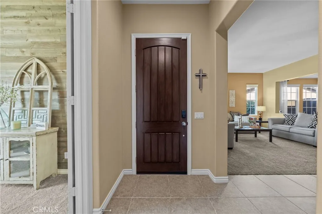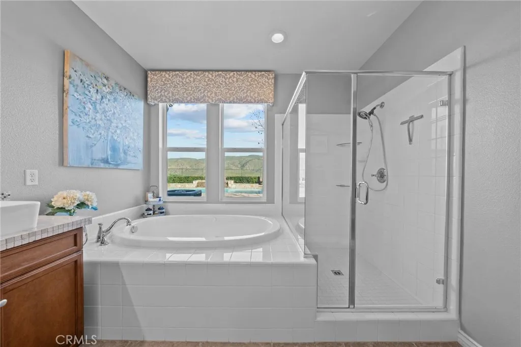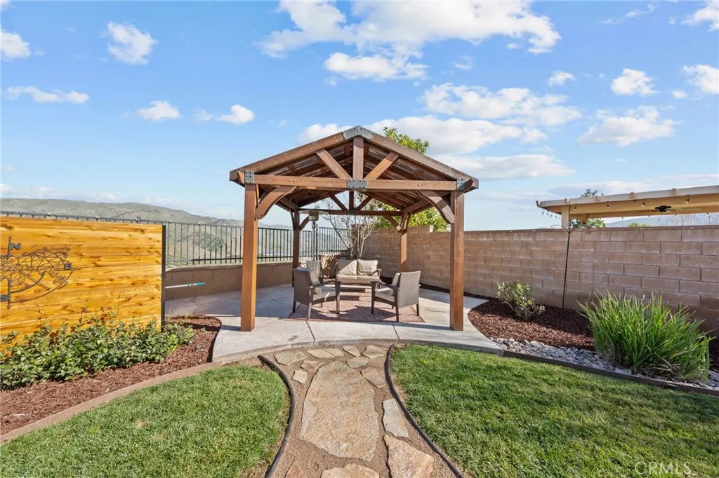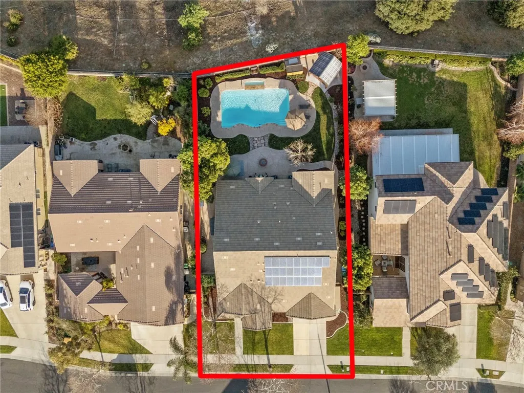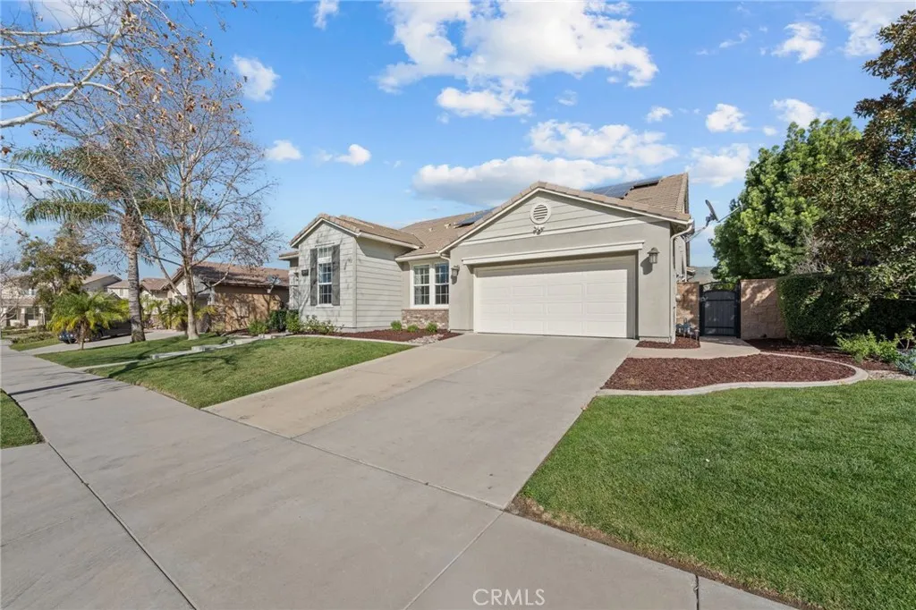 Welcome to 25620 Spicewood Street, located in the prestigious gated community of Sycamore Hills within Sycamore Creek Community of Temescal Valley. This stunning 4-bedroom, 3.5-bath home offers 3,593 square feet of beautifully designed living space on a generous 11,326 sq. ft. lot, perfectly blending luxury, comfort, and functionality. Designed to live like a single-story, the main level features the primary suite plus two additional bedrooms and a full bath, ideal for multi-generational living. The primary retreat includes a spacious sitting area, spa-like en-suite with dual vanities, soaking tub, separate shower and a large walk-in closet. Upstairs, youll find a massive loft/game room, along with one bedroom and a full bath, perfect for guests or teens. The heart of the home is the gourmet kitchen featuring an large island with granite countertop, GE Profile stainless steel appliances, travertine backsplash with marble insets, and a seamless flow into the open living areas. This home is equipped with a solar lease to be assumed by the buyer, at approximately $163 per month, offering significant savings on the electric bills and making this large home more energy efficient. Step into your private backyard oasisan entertainers dreamcomplete with a saltwater pool, lush landscaping including an assortment of fruit trees: Fuji apple, orange, lemon, and mandarin. An unobstructed mountain view, with no rear neighbors, and a protected nature reserve behind the home that will never be built on. The 3-car tandem garage with epoxy flooring adds both convenience and a finished look.