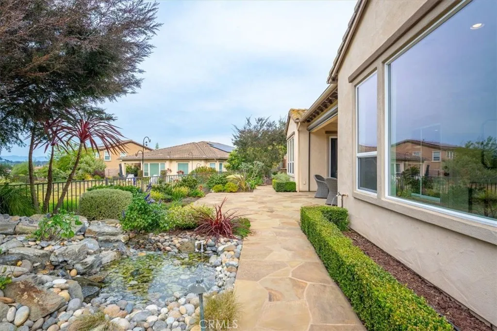 Welcome to this stunning Carmel model home, gracefully set within the highly sought-after Trilogy Monarch Dunes community. This beautifully designed single-level residence captures sweeping golf course and ocean views, offering a peaceful backdrop to everyday living and unforgettable sunsets right from your own backyard. Thoughtfully crafted with comfort and elegance in mind, the home features 3 spacious bedrooms and 2.5 bathrooms, providing plenty of room for both family and guests. Step inside to an expansive open floor plan where soaring ceilings and abundant natural light create a warm, airy atmosphere that instantly feels like home. At the heart of the space, the gourmet kitchen is a true showpiece complete with an oversized island, quartz countertops, premium JennAir stainless steel appliances, and a generous walk-in pantry perfect for gathering, entertaining, and everyday living alike. Beautiful upgrades throughout include fresh interior paint, rich hardwood floors, and custom built-in cabinetry that add both style and function. A smart space design enhances organization and convenience, making daily life effortless. Seamlessly blending indoor and outdoor living, the rolling wall with a screen door opens to a private backyard retreat. Here youll find a tranquil waterfall feature, cozy fire pit, and fully equipped outdoor kitchen ideal for hosting friends or simply relaxing under the Central Coast sky. The oversized lot is thoughtfully landscaped with low-maintenance design and artificial turf for easy care year-round. Enjoy the serenity and resort-style lifestyle