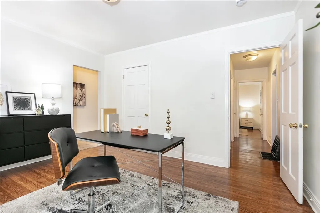 This single-story home is located in the north central neighborhood of Pasadena. It features a welcoming front yard and a detached garage with gated driveway access. Conveniently close to schools, local parks, cafs, and retail shops, Old Town Pasadena, the Rose Bowl, golf courses, hiking trails, and a variety of cultural attractions are all within easy reach. The living room is spacious and inviting with hardwood flooring and a fireplace. Abundant natural light flows in through the windows, creating an open and comfortable setting for everyday living, with easy flow into the formal dining room suitable for gatherings. The open kitchen includes recessed lighting, ample cabinetry, granite countertops, a mosaic tile backsplash, tiled flooring, and stainless steel appliances. An adjacent breakfast nook provides space for casual dining. The home includes two bedrooms offering comfortable accommodations and flexible use. The full bathroom features a tub-and-shower combination with tiled finishes for easy upkeep. A separate laundry room provides ample storage space for household needs. Spend leisurely afternoons in the south-oriented backyard, which offers a pleasant outdoor environment with a built-in fire pit seating area suitable for relaxation, gatherings, and alfresco dining. Mature landscaping and fencing add a sense of privacy. The outdoor space provides a comfortable and versatile area for entertaining and enjoying the peaceful, tranquil neighborhood..
