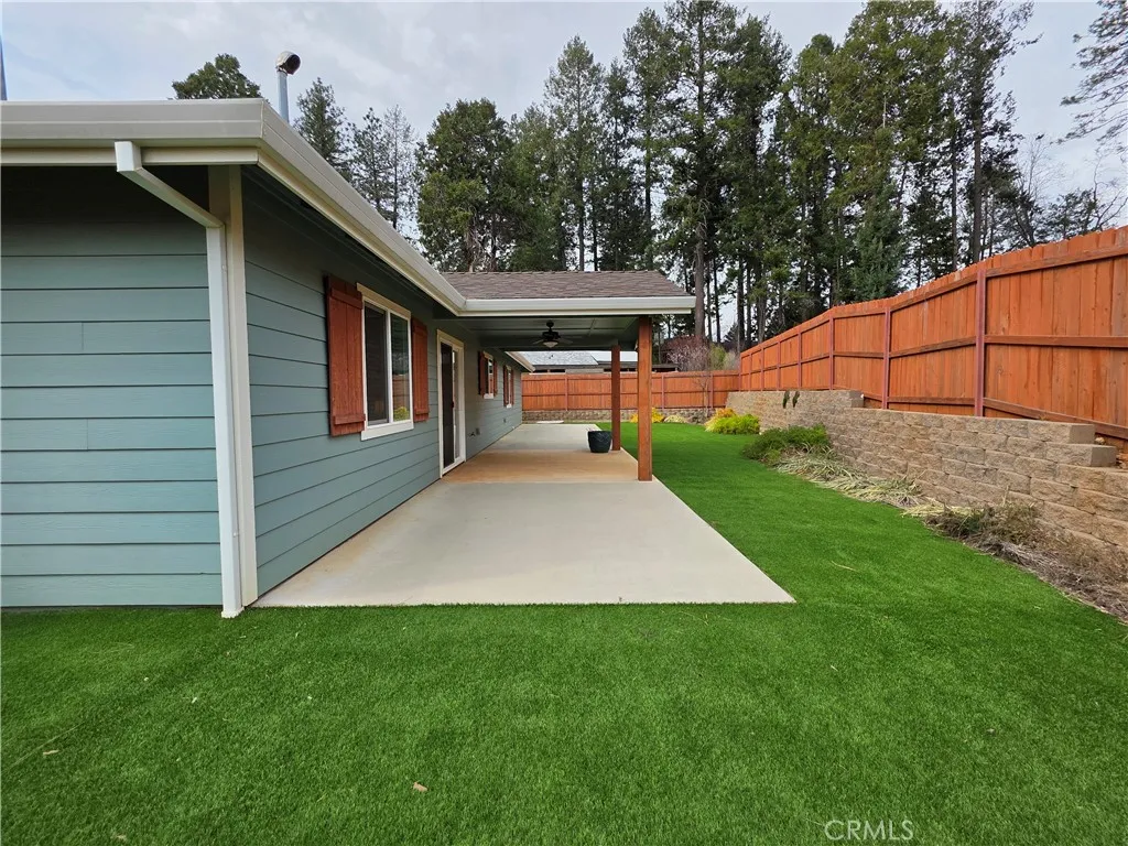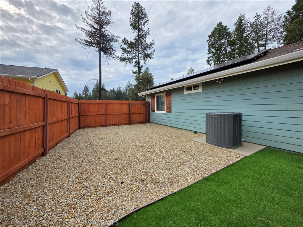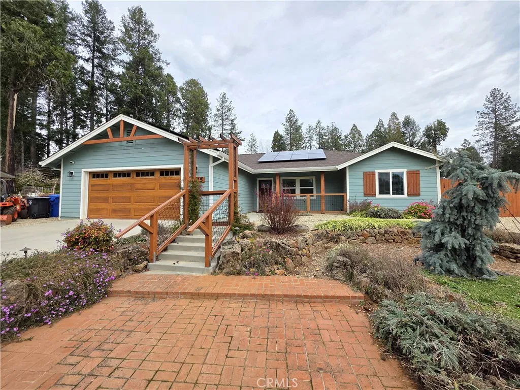 Welcome to this well-designed home in a peaceful forest community, conveniently located near Skyway for an easy drive to Paradise or Chico. Rebuilt as a true forever home, nearly $100,000 was invested in exterior improvements, creating a beautifully landscaped yard with seasonal blooms and rock accents. The owned 5.5kWh solar system fully offset the current owners electric usage, offering excellent energy efficiency. Inside, vaulted ceilings and custom wood cabinetry add warmth and function, with pull-out drawers and under-cabinet lighting in the kitchen. The split-bedroom floor plan offers privacy, placing the primary suite in the rear corner with a double-sink vanity and upgraded walk-in shower. On the opposite side are the guest bedroom, hall bath, and an office or hobby room with 220V power. Additional features include an oversized garage, insulated interior walls, a split HVAC system with air purification, and a whole-house Generac propane generator. Located in Magalia, youll enjoy close access to hiking, fishing, hunting, off-roading, and other outdoor recreation, plus local community events throughout the year. Buyers to verify any and all information to their satisfaction.