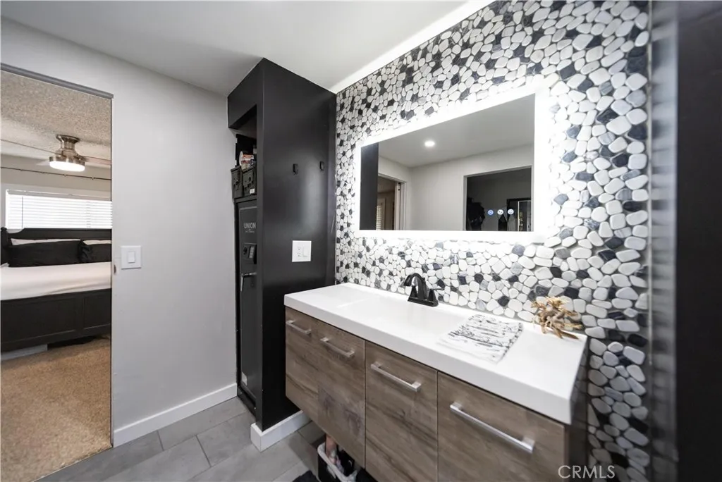 Welcome to life at The Farm, where mornings begin with fresh air, winding trails, and wide-open skies, and evenings end with quiet privacy and sunset views over the hills. Situated with no rear neighbors and backing directly to HOA-maintained land with hiking and mountain biking trails, this property offers a rare sense of space and connection to nature. Step out your front door to direct access to an additional community pathway, creating an effortless indoor-outdoor lifestyle. The low-maintenance yard allows you to spend more time enjoying your surroundings, while the covered outdoor seating area provides the perfect place to unwind and take in colorful sunsets behind the hills. A large gate offers convenient access to the side yard for added flexibility. The front yard is designed for recreation and relaxation, featuring a putting area, horseshoe pit, and a mini skateboard feature for added enjoyment. Inside, the home blends thoughtful updates with comfortable living. The modern kitchen showcases a deep contemporary sink and laminate wood flooring that extends through the kitchen and bathroom areas. Updated baseboards and molding add a clean, finished look throughout. Both bathrooms were remodeled approximately five years ago, offering refreshed style and functionality. A mudroom/laundry room provides practical access to the side yard, and the washer and dryer are included in the sale. Major system improvements provide peace of mind, including a new roof (2025), new exterior paint (2025), and a new water heater (2025). The home features 3 bedrooms plus an additional room