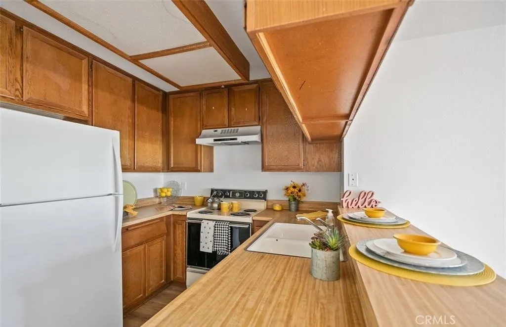 Ground-floor condo located in a desirable, gated 55+ community of only 98 homes in Huntington Beach, just minutes from the beach and local amenities. This home enjoys a peaceful park-front setting, facing Taylor Park with expansive greenbelts and mature trees that provide a serene and private backdrop. The spacious bedroom features a large walk-in closet offering abundant storage and convenient space for a stackable washer and dryer. The bathroom includes a single vanity and a shower-over-tub combination. The light and bright cottage-style kitchen offers Formica countertops, wood cabinetry, and an electric range. This well-established community offers comfortable, low-maintenance living in a prime coastal location. 1 assigned parking space. HOA fee includes water and trash. Please note: Per the HOA's CC&R's, at least one resident has to be 60yrs of age for the downstairs Units.