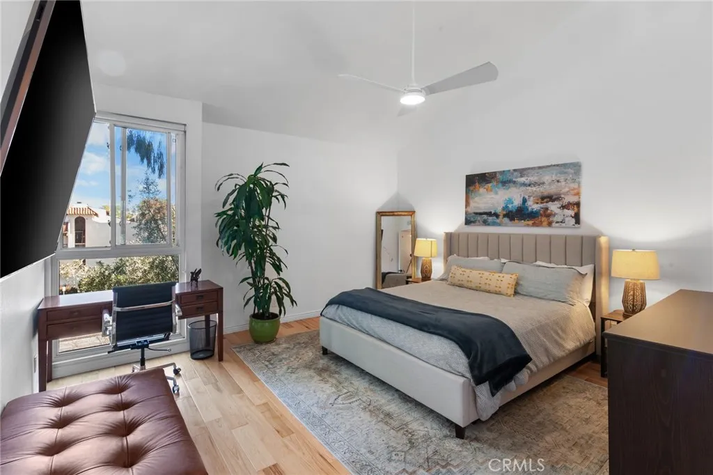 Gorgeous Top-Floor Penthouse High End Remodel. The Home offers Soaring Cathedral Ceilings with an abundance of Natural Light Streaming through the Gallery-Style Dual Paned Windows. The Designer Kitchen is a Custom-Built Culinary Masterpiece featuring an Artisan-Designed Layout with Stone Countertops, Premium Stainless Steel Appliances, a Farmhouse Sink, Wine Refrigerator and Elegant Glass Cabinetry. The Unit has Gorgeous Wide-Plank Hardwood Floors that Flow throughout the unit. The Living Room includes a Wet Bar with a Wine Refrigerator, Beautiful Fireplace, perfect for Entertaining, along with a Sliding Glass Door that opens to the Spacious Tiled Balcony making it an ideal spot for an Urban Garden or Sunset Dining. The Primary Suite offers a Serene Retreat with Vaulted Ceilings, Dual Sinks, Multi-Mirrored Closets and a Lavish Primary Bathroom with a Dedicated Dressing Area. The Unit also includes Central Heating/AC, Recessed Lighting, All 4 Mounted TV's, Plantation Shutters and tons of Natural Light. It also includes 2 side-by-side Subterranean Parking Spaces with Additional Visitor Parking. Situated in the well-maintained "White Oak Encino" Complex, Residents enjoy a Resort-like Atmosphere with Lush Landscaping and Mature Trees. Amenities include a Sparkling Pool, Indoor Spa, Sauna & Recreation Room. HOA Perks: Dues cover Earthquake Insurance, Water, Gas, Trash and Common Areas Maintenance. The Complex is walkable to Ventura Blvd., Premier Shopping, Trader Joe's, World-Class Dining and Close to Freeway Access. Most of the furniture can be included as part of the sale.