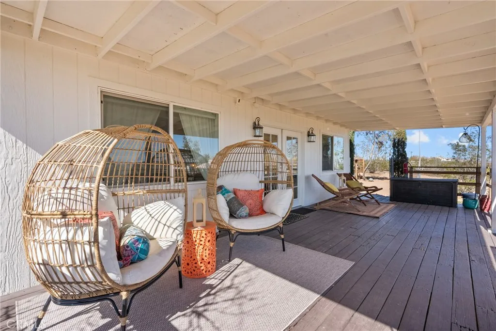 Welcome to your dream desert oasisset on 2.5 acres in a peaceful yet convenient Landers location just minutes from Joshua Tree National Park. With sweeping desert and stunning Goat Mountain views, this enchanting retreat blends tranquility, natural beauty, and modern comfortsincluding a private outdoor spa, cowboy tubs, an EV charging station, and a brand-new patio cover that extends the living space outdoors, creating added privacy and allowing you to enjoy the outdoor living, rain or shine. The home offers 2 bedrooms, 1 full bath, a 45-ft container for storage (or whatever your imagination desires), and two additional sheds (one housing the washer and dryer). Sold fully furnished (with a few exceptions), its turnkey and ready to enjoy as a personal getaway or income-producing rental. Adventure surrounds you5 minutes to the historic Integratron, 12 minutes to Giant Rock, 15 minutes to Joshua Tree Village, and close to the world-famous King of the Hammers in Johnson Valley. Whether youre seeking a serene sanctuary under star-filled skies or a high-desert investment opportunity, this captivating property truly has it all. Dont miss your chance to make your desert dreams a reality.