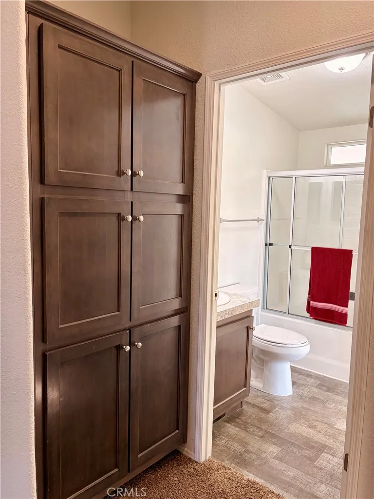 Experience 55+ resort-style living in the beautiful Royal Holiday community priced to sell fast!. This must see home looks like new and offers two spacious master suites, each with its own connecting bathroom. One suite features a walk-in closet and walk-in shower, while the other offers two closets and a tub-shower combo. All lighting fixtures and faucets have been tastefully updated. The open concept kitchen flows seamlessly into the living room and includes a large pantry, center island, recessed lighting, upgraded stainless steel appliances, laminate plank flooring, and abundant cabinet space. Theres also plenty of room for a dining table. Vaulted ceilings enhance the airy feel, and all windows are fitted with blinds and custom blackout solar shades, with an automatic controller for the living room shade. Additional highlights include an inside laundry room with upgraded washer and dryer included, plus a large custom wooden walk-in shed (10x12) for extra storage. This home truly has it all. Residents enjoy fantastic community amenities such as a clubhouse, swimming pool, two jacuzzis, TV room, exercise room, billiards area, dog park, and more. Come retire your way in this scenic, peaceful, resort-style community.