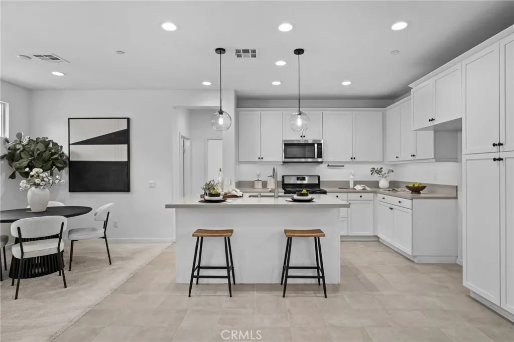 Offering the privacy of a single-family residence with the ease of a low-maintenance lifestyle, welcome to 9463 Retreat Place. A detached home offering a true retreat within The Resort. Step into the main level that feels comfortable and connected, with high ceilings and recessed lighting giving the space an airy, open feel. The kitchen is well-appointed with quartz countertops, white shaker cabinets, stainless steel appliances, and a center island that works equally well for morning coffee or hosting. The primary suite offers a walk-in closet and genuine separation from the two additional bedrooms, a layout that adapts easily to growing families, a home office, or visiting guests. Two and a half baths, a tankless water heater, and a 240V EV charging outlet round out a home that's been thoughtfully set up for everyday life. Life at The Resort revolves around community. Residents enjoy a pool, fitness center, business center, conference rooms, BBQ areas, fire pits, bocce ball and cornhole courts, a dog park with wash station, and an event center that brings the neighborhood together throughout the year. Walkable cafs including Teaspoon boba shop and a Cassidy's Corner Bagel Cafe are just steps away, the kind of convenience that becomes part of your daily routine quickly. Getting around is straightforward, too. You're approximately 5 minutes from the Rancho Cucamonga Metrolink Station, the I-10 and I-15 Express Lanes, which means Downtown Los Angeles and Orange County is accessible for a morning commute. Victoria Gardens, Top Golf, Haven City, Quakes Stadium, and Ontario Inte