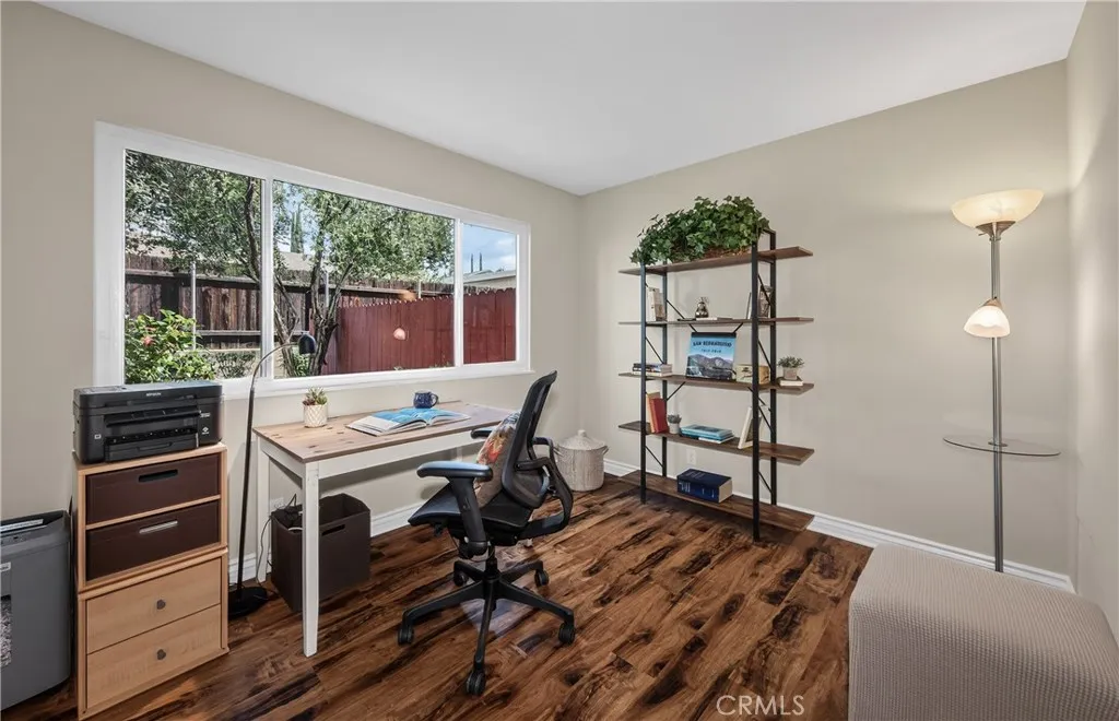 VOILA! WELCOME TO THE ICONIC BRAEMAR CO-OP'S! Announcing an Immaculate and lovingly maintained 2-bedroom Stock Cooperative residence ideally located adjacent to historic Downtown Redlands. Just blocks away from TWO train stations, charming shops, restaurants, the public library, and the world-famous Redlands Bowl, it's location offers exceptional convenience combined with a vibrant lifestyle. This HOA provides exceptional value and convenience, covering the community pool, fire insurance, water, sewer, trash,PROPERTY TAXES, landscaping, exterior maintenance, in-wall plumbing and electrical, hot water heaters, and all community laundry facilities, including the use of washers and dryers. Oh, one more added value is the use of a COMMUNITY GARDEN! This is a wonderful opportunity to enjoy low-maintenance living in one of Redlands most desirable and walkable locations. This special downstairs unit is tucked privately toward the back of the community, offering peaceful surroundings with no stairs to climb. The open floor concept creates a bright, comfortable living environment designed for easy everyday living. Enjoy a private patio with retractable awning - the perfect setting for relaxing mornings or quiet evenings. Note one bedroom window offers a private view onto a serene garden environment . The home is truly immaculate and well loved, featuring newer dual-pane windows, newer flooring, fresh paint, a newer heater, and high-quality new screen doors, reflecting pride of ownership throughout. In addition, for your comfort, the owner is leaving a custom Murphy bed that is perfe