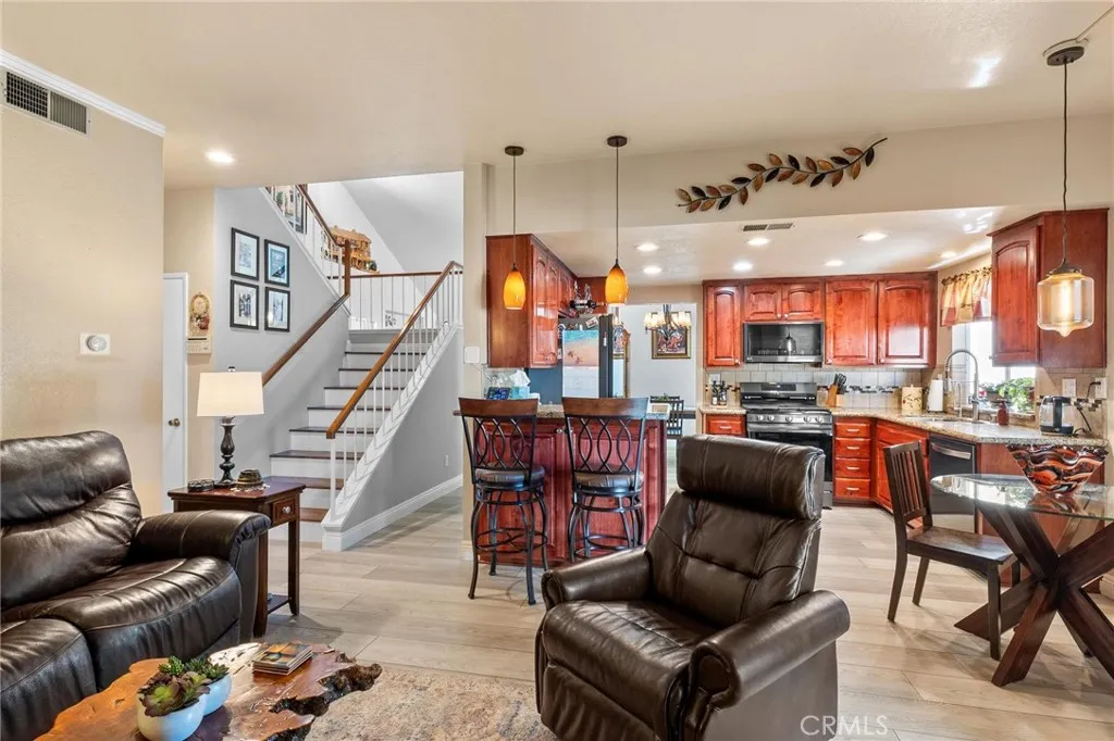 First time on the market since 1990! Pride of ownership shines in this beautifully maintained 3-bedroom, 2.5-bath home offering 1,528 sq. ft. of living space on a 6,000 sq. ft. lot. Purchased brand new by the original owner and meticulously cared for ever since, this is a rare opportunity to own a truly turnkey property in established Yucaipa. Step inside to a functional and inviting floor plan featuring a formal living room, formal dining room, and a warm, welcoming family room with fireplaceperfect for gatherings or cozy evenings at home. The upgraded kitchen is a standout with granite countertops, black stainless steel appliances, and rich stained wood cabinetry that offers both style and functionality. Thoughtful upgrades throughout include laminate wood flooring, upgraded lighting fixtures, whole house fan, dual-pane windows, security screen door, upgraded water heater, interior and exterior paint, and classic window shutters throughout. The remodeled primary bathroom adds a fresh, modern touch. A major bonus: the attic was recently sanitized with brand-new insulation installed for improved efficiency and comfort. Step outside to a private backyard retreat complete with mature landscaping, a large patio cover with roll-down shades for year-round enjoyment, two orange trees and one apple tree, and a newer storage shed just a few months old. Block walls and vinyl fencing provide added privacy, and the tile roof adds lasting value. No HOA. Immaculate. Move-in ready. This is the kind of home that doesnt come around often lovingly maintained, thoughtfully upgraded, and rea
